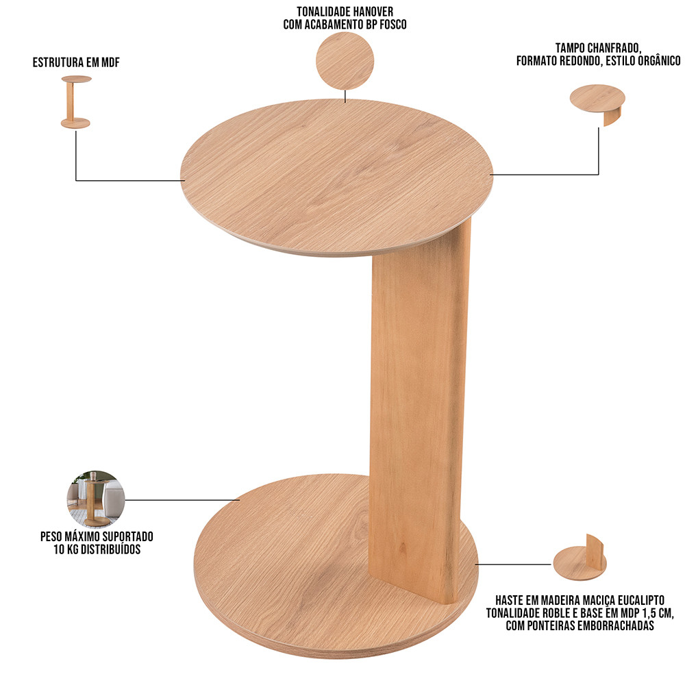 Mesa Lateral Para Sala de Estar Pés Madeira Bulat A03 Hanover Roble - Lyam Decor