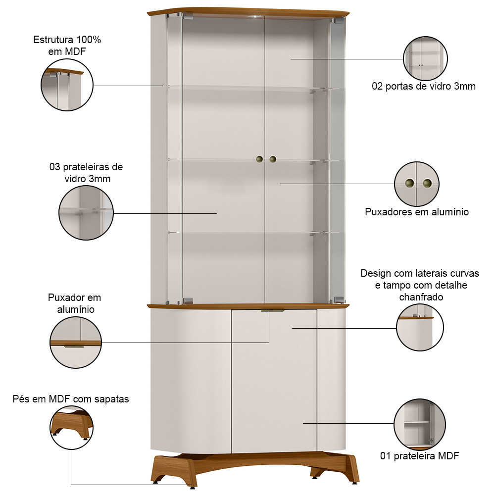 Cristaleira Para Sala de Jantar Bar 3 Portas Verbena N01 Off White Ypê - Lyam Decor