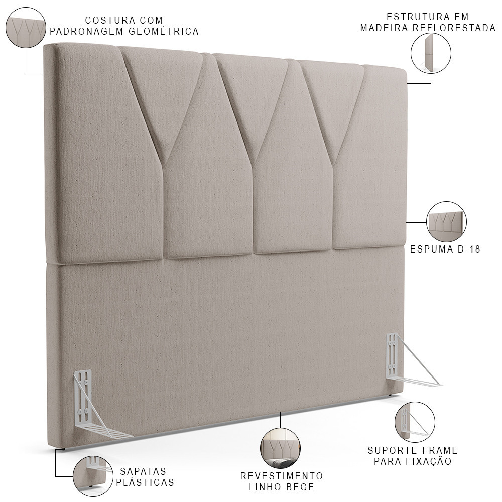 Cabeceira Cama Box Casal 140 cm Aurora W01 Linho Bege - Lyam Decor