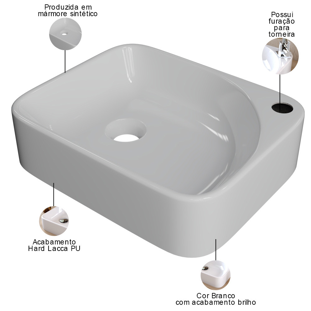 Cuba de Apoio Retangular Para Banheiro Lavabo Cross C01 RO36W Branco - Lyam