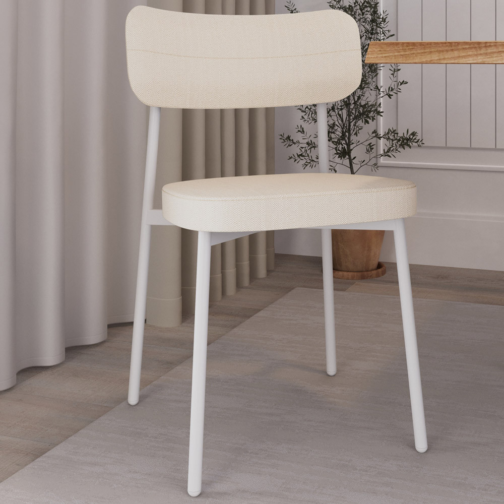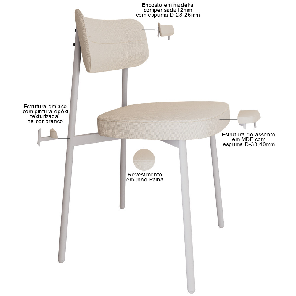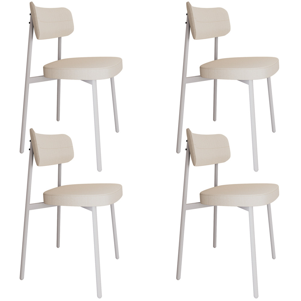 Kit 04 Cadeiras Estofada Para Sala de Jantar Astrid Branco C01 Linho Palha - Lyam Decor