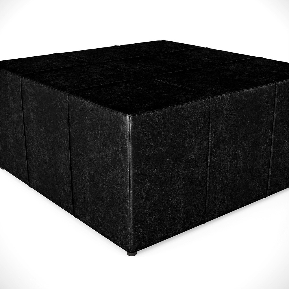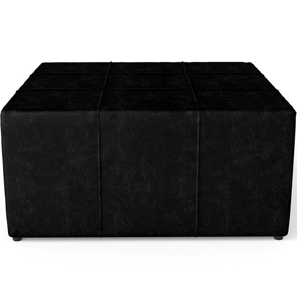 Puff Decorativo Para Sala de Estar Quadrado Milano 90x90cm W01 Couríssimo Preto - Lyam Decor