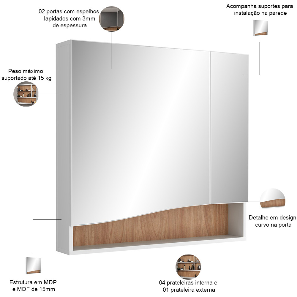 Armário Para Banheiro com Espelho 80cm Evie B06 Branco Tau - Lyam Decor