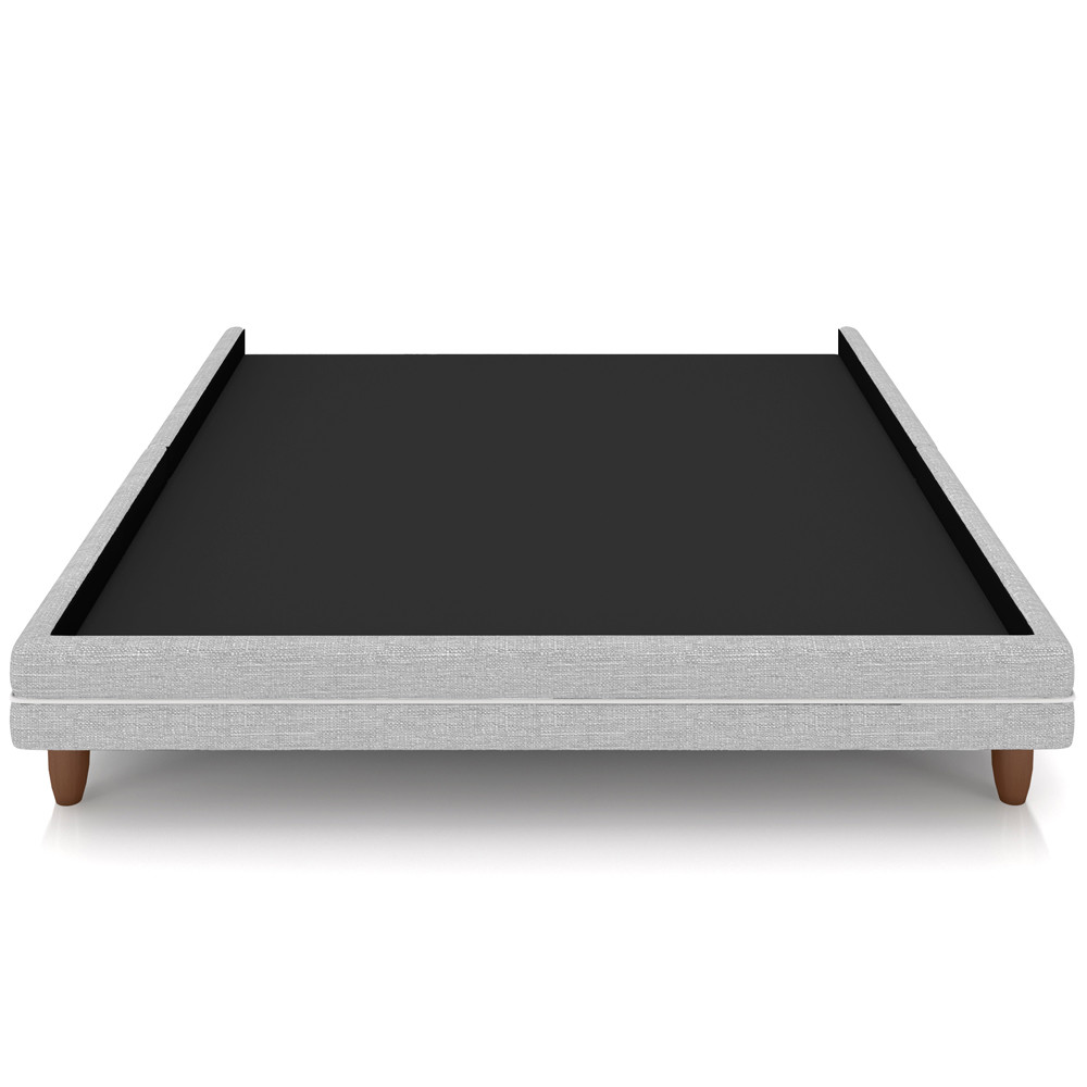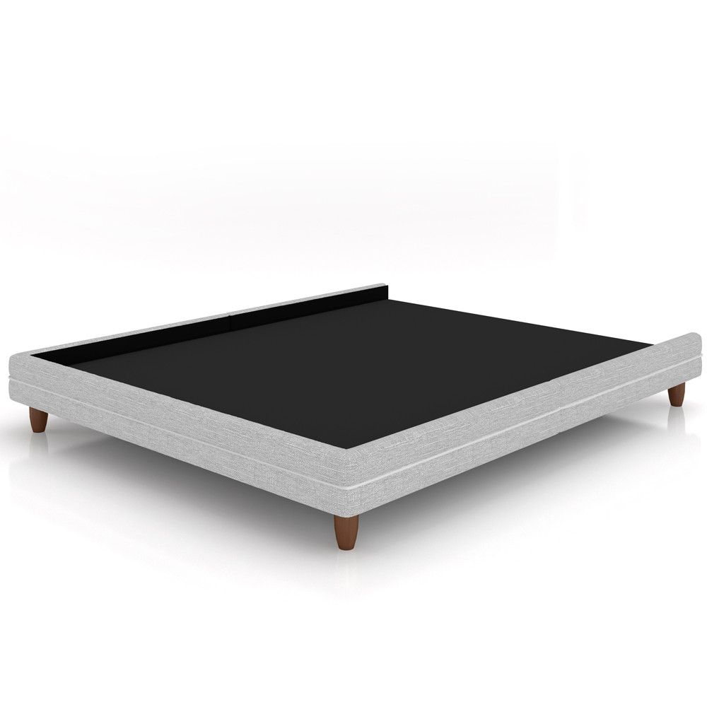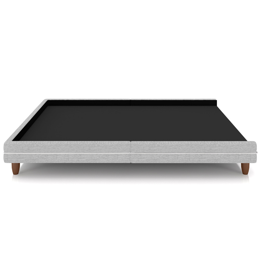 Cama Queen Base Box Pés Madeira 168cm Suném P05 Linho Cinza Claro Bouclê cru - Lyam Decor