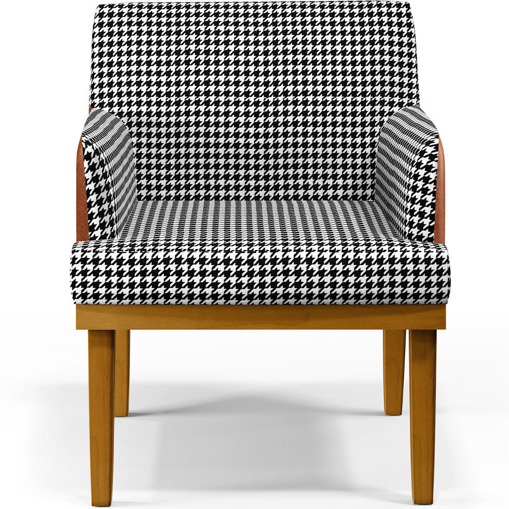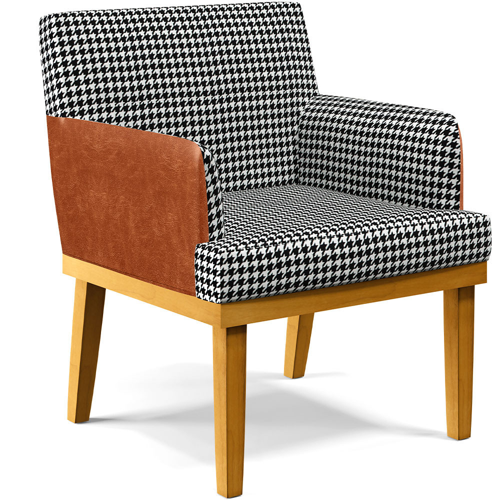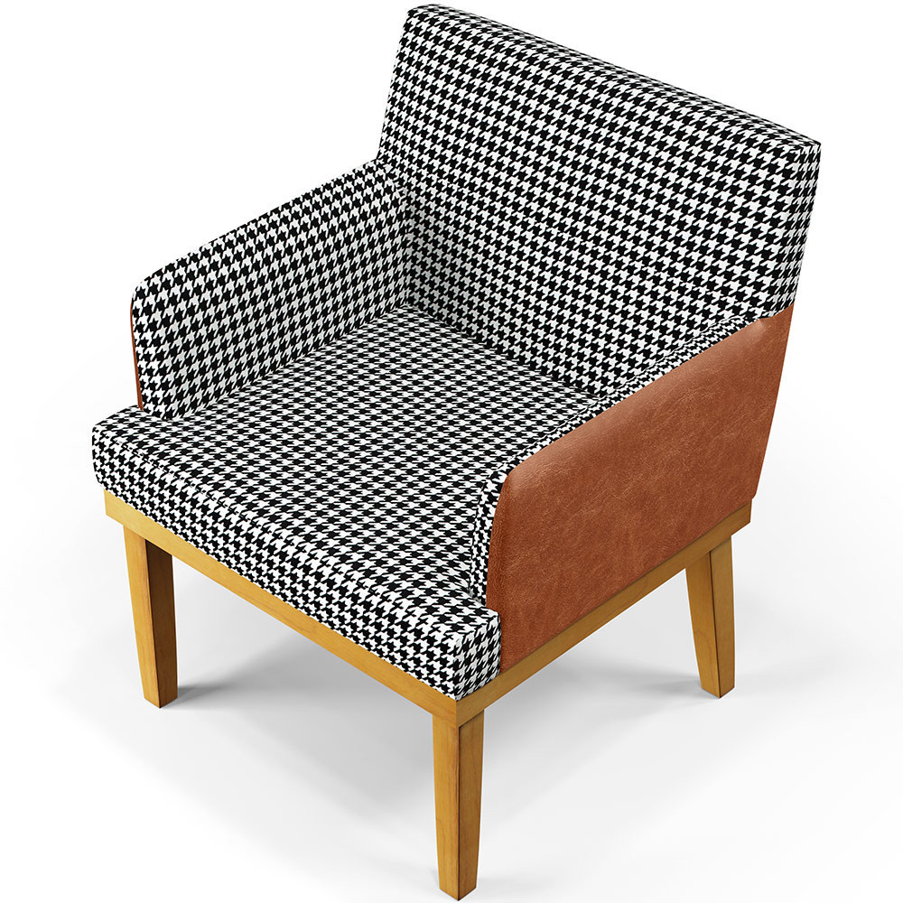 Poltrona Decorativa Base Mel Beatriz W01 Suede Pied Poule Couríssimo Camel - Lyam Decor