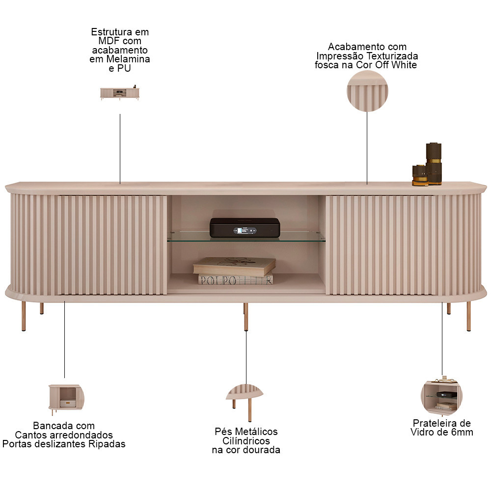 Rack Para Sala de Estar TV 75 Pol Atlantis D05 Off White - Lyam Decor