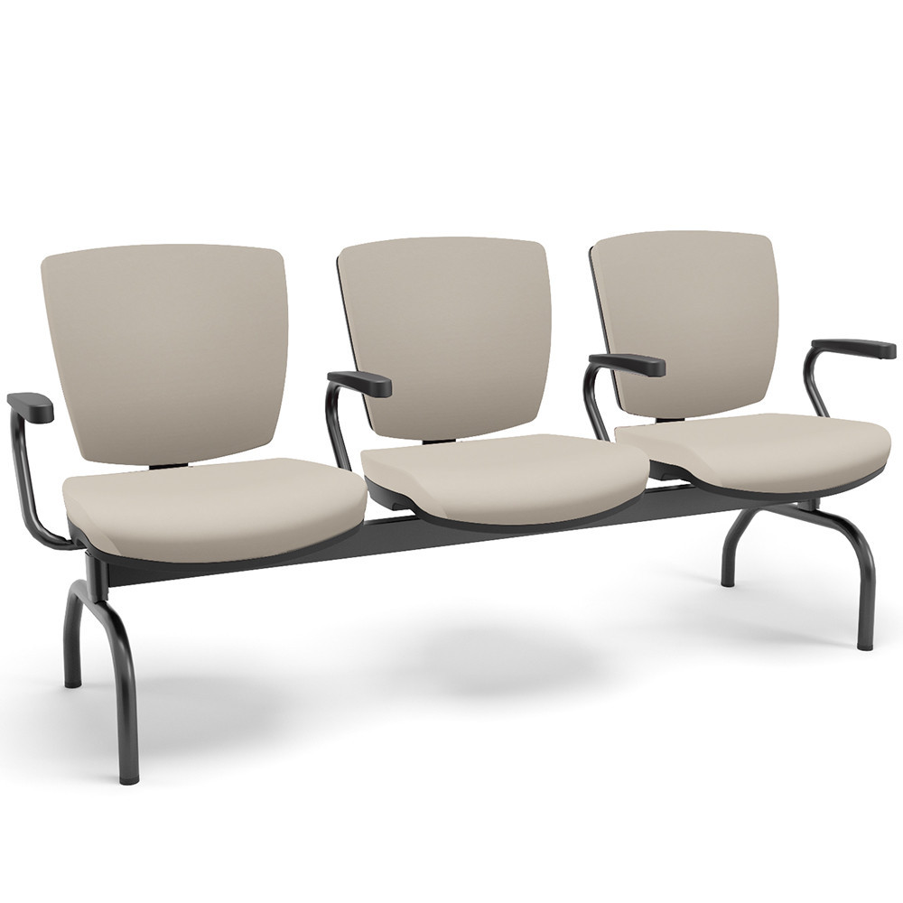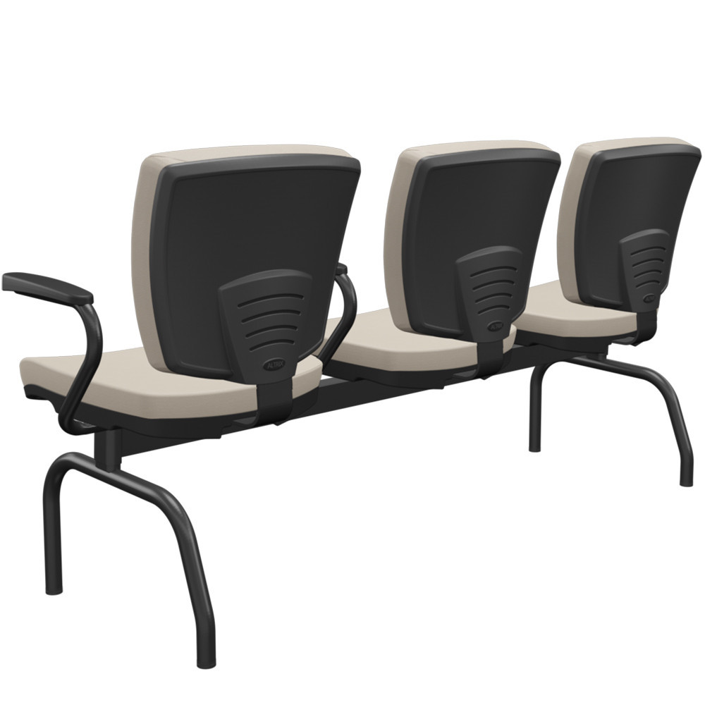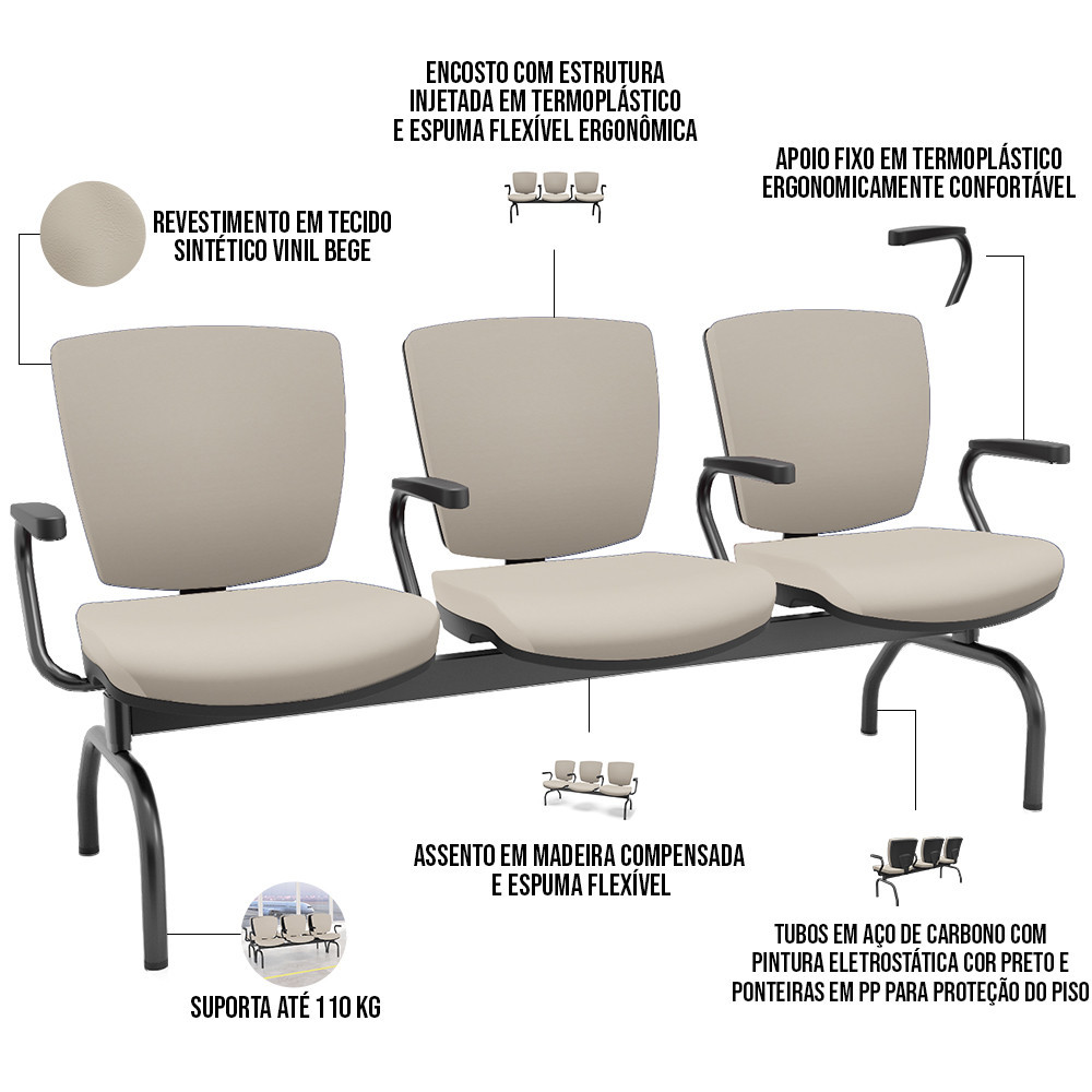 Cadeira Longarina 3 Lugares Aeroporto Recepção Preto Baixa Flexi P03 Vinil Bege - Lyam