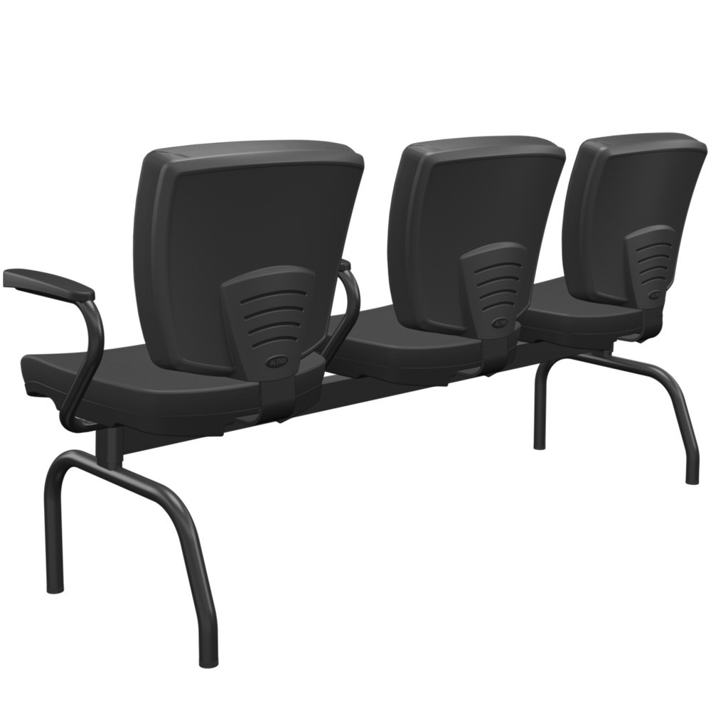 Cadeira Longarina 3 Lugares Aeroporto Recepção Preto Baixa Flexi P03 Vinil Preto - Lyam