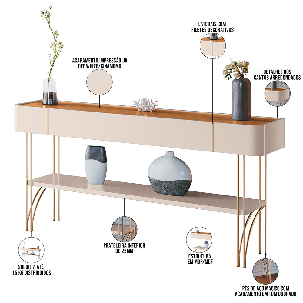 Kit Aparador La Vie com Mesa de Centro Harmony B01 Off White Cinamomo - Lyam Decor