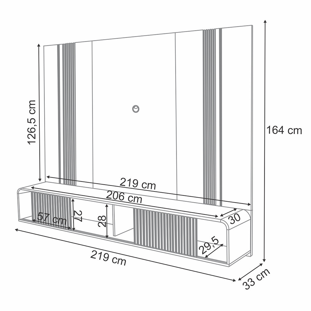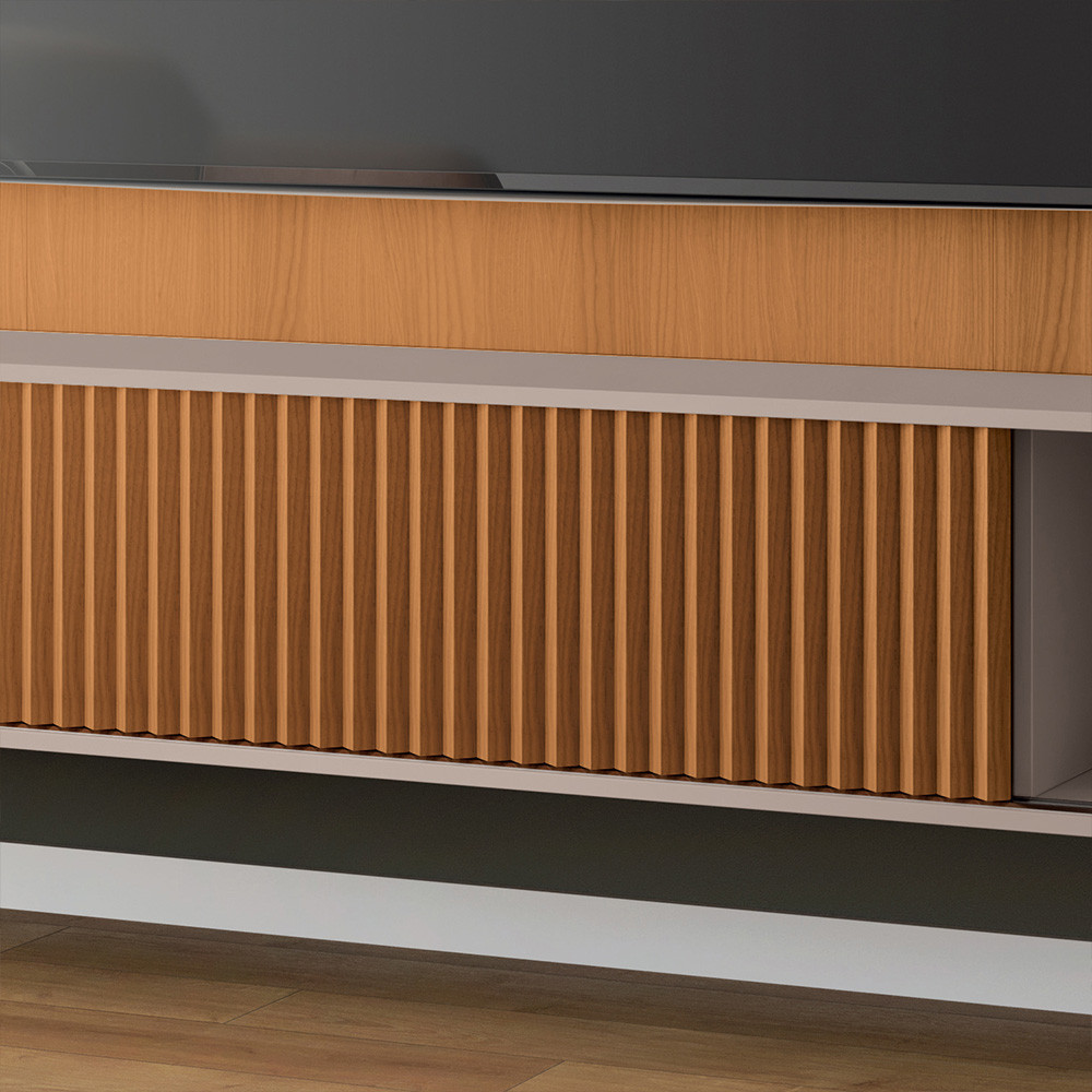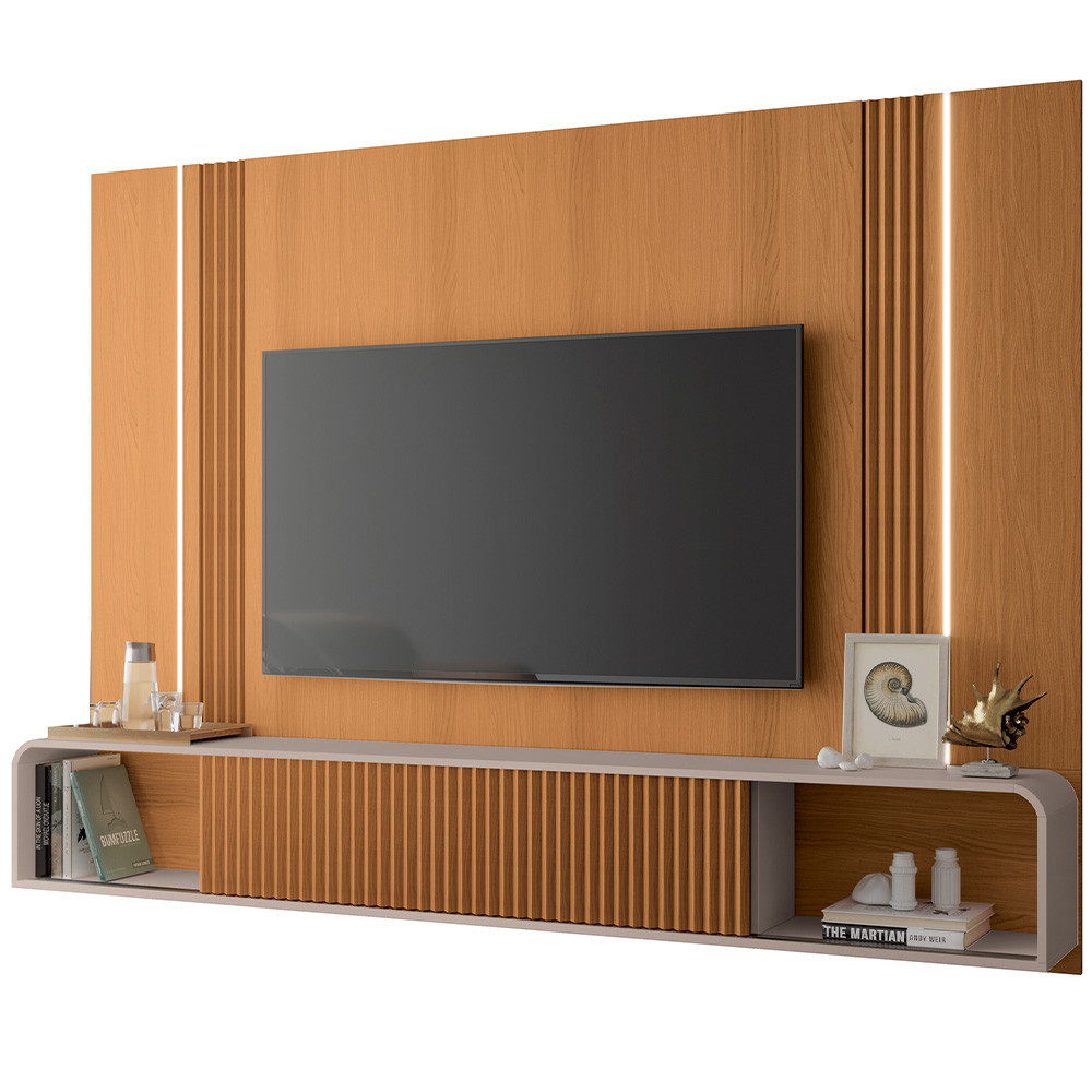 Painel Para TV 85 Pol com Bancada Suspensa e LED Zurick B01 Cinamomo Off White - Lyam Decor