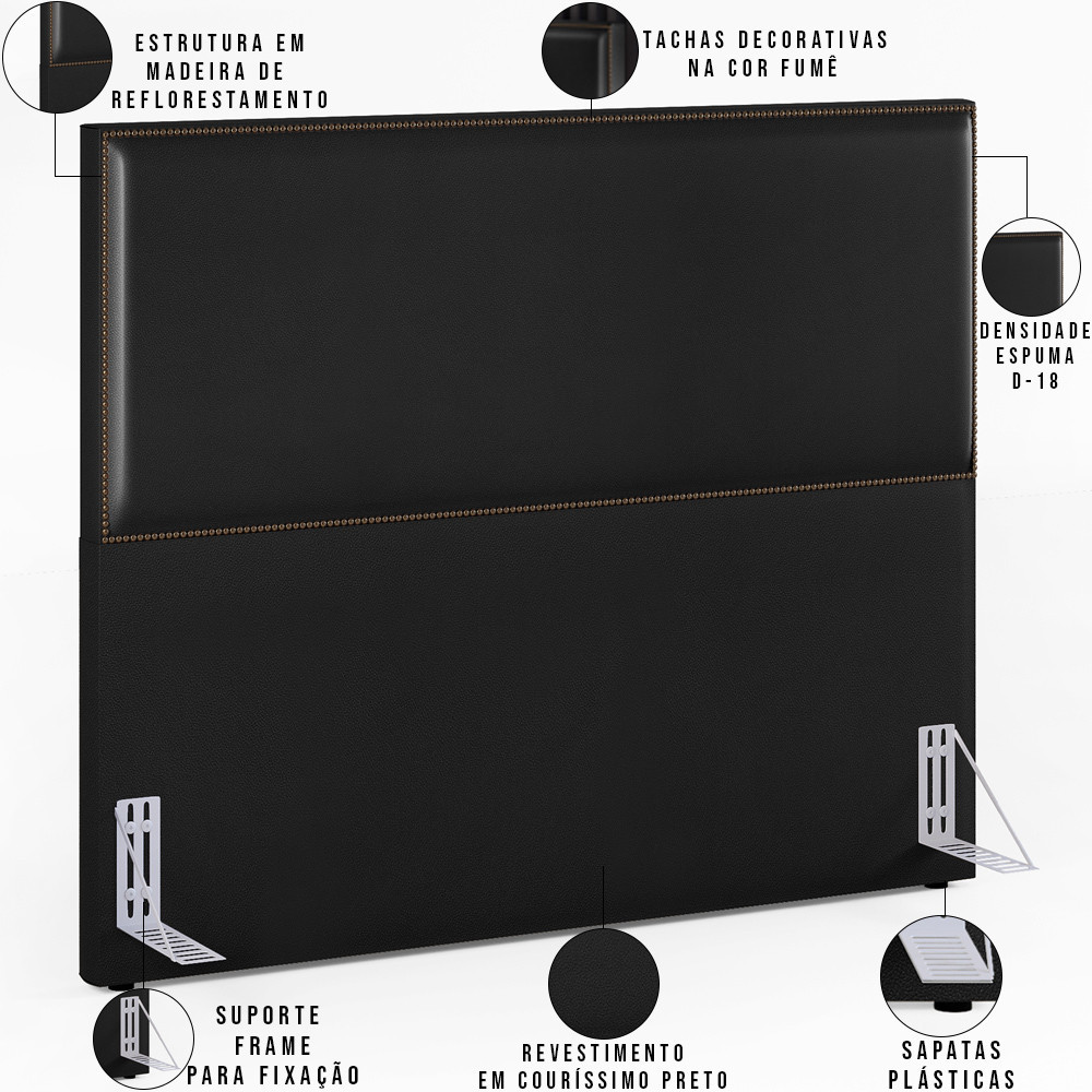 Cabeceira Cama Box Queen Com Tachas 160 cm Vicenza L02 Couríssimo Preto - Lyam Decor