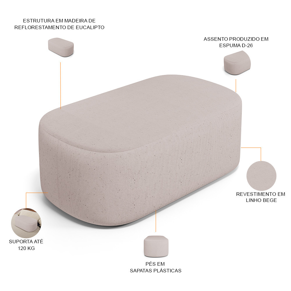 Puff Decorativo Orgânico Para Living Quarto 100cm Doha W01 Linho Bege - Lyam Decor