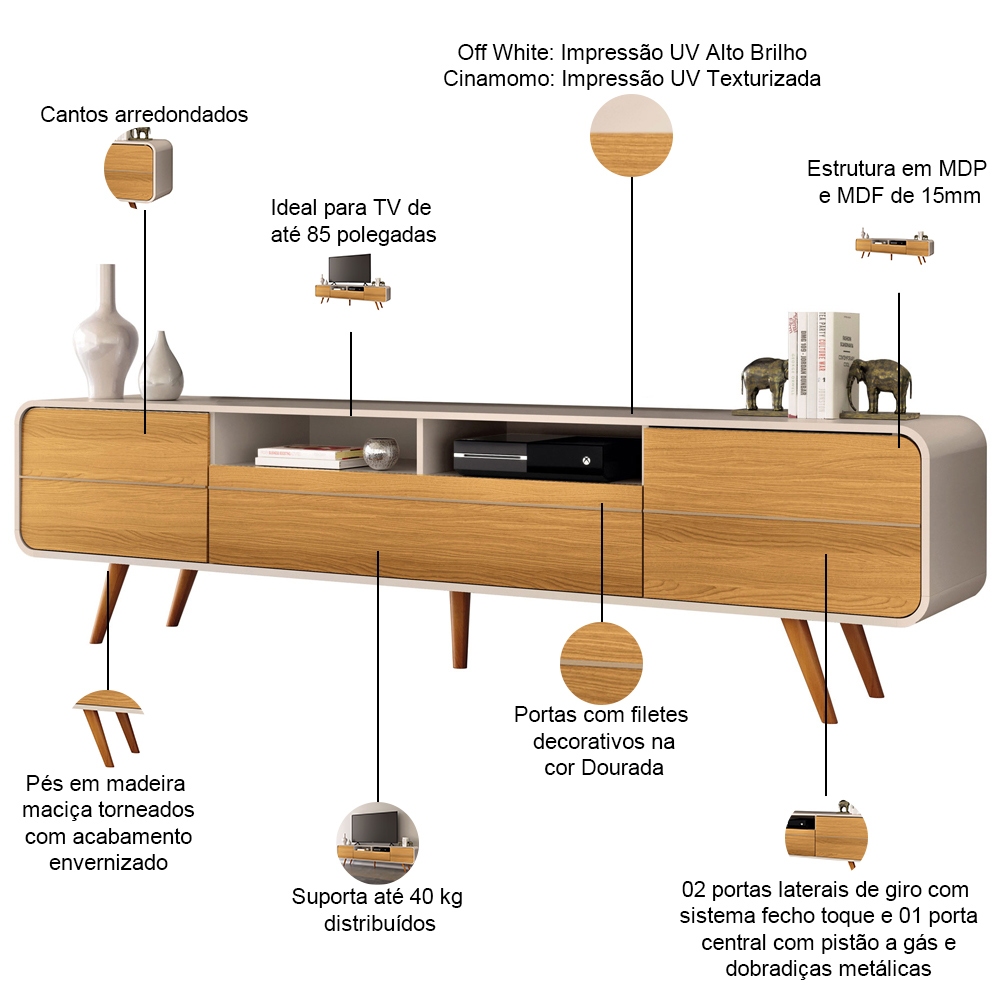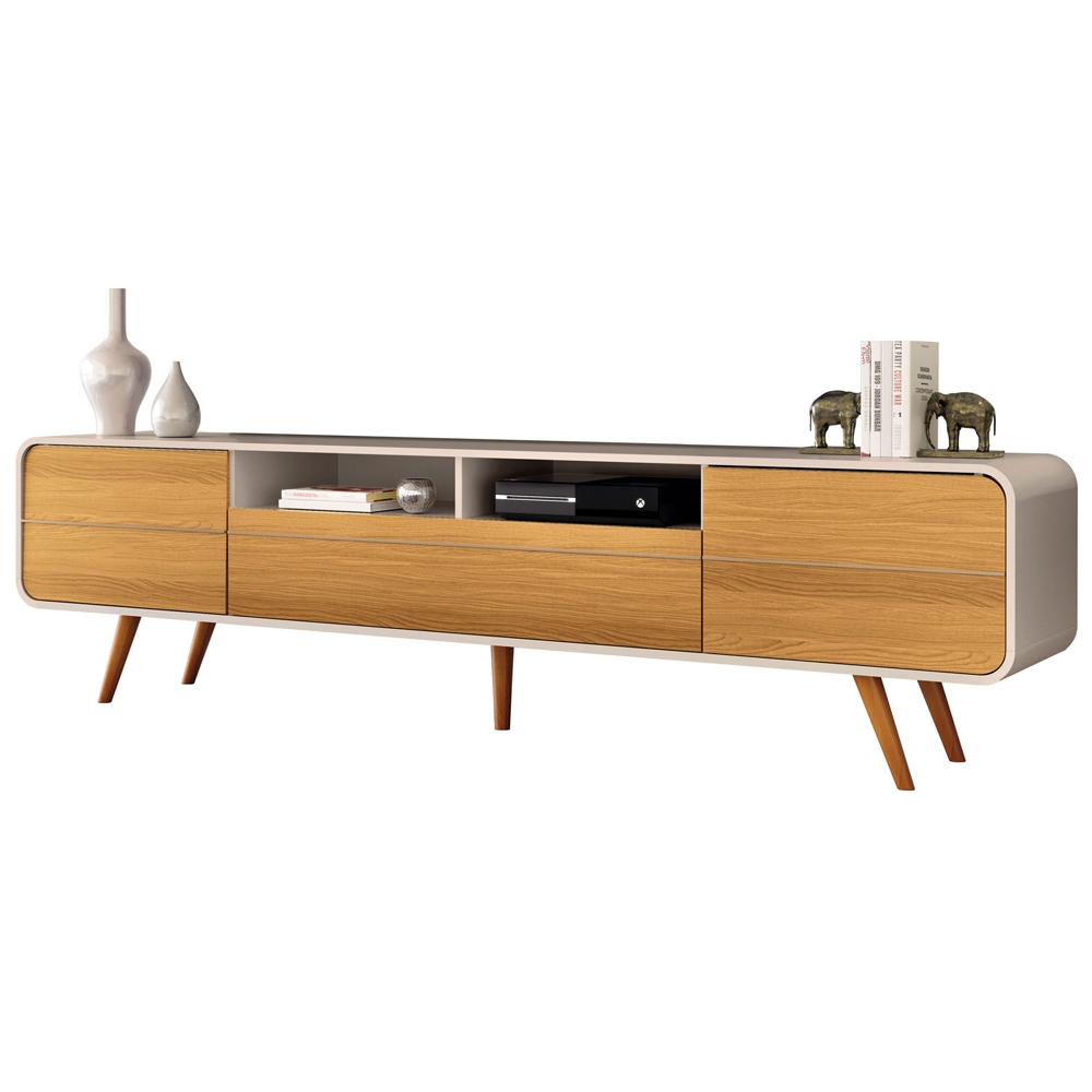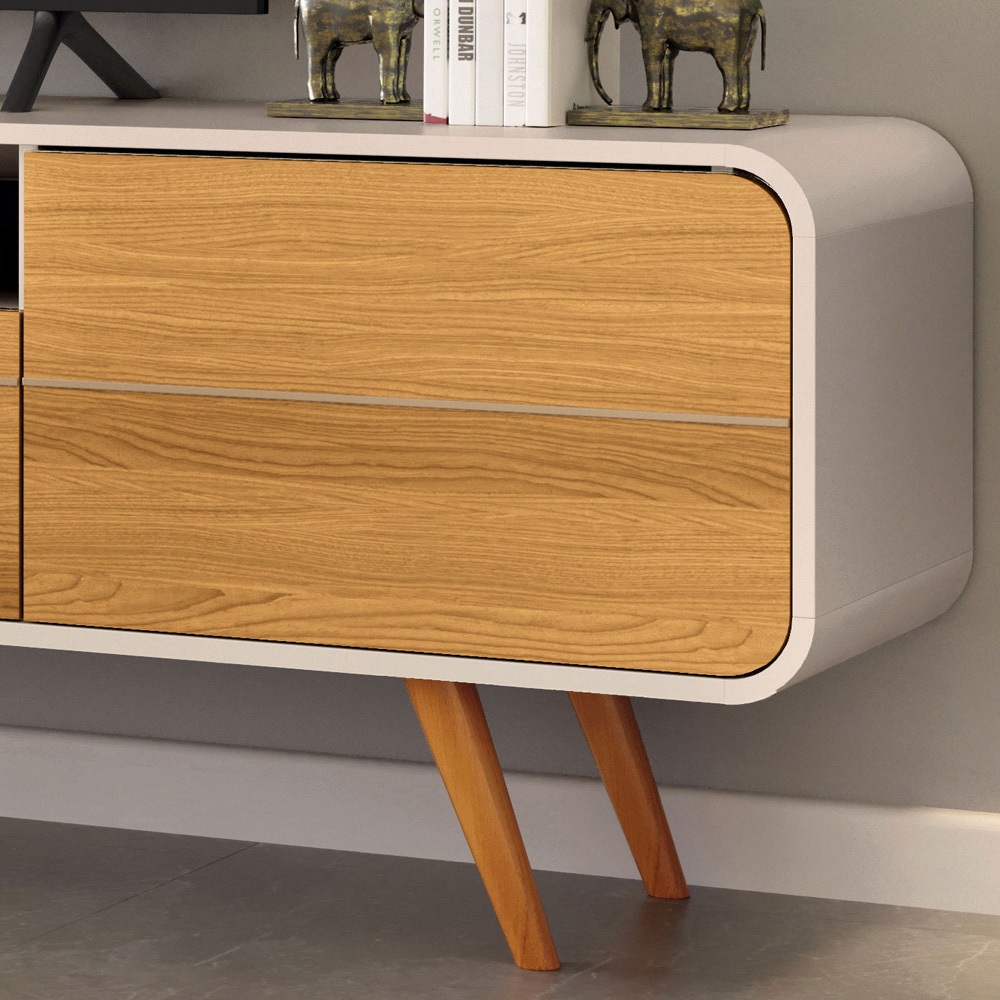 Rack Para Sala de Estar TV 85 Pol Orgânico 220cm Erah B01 Off White Cinamomo - Lyam Decor