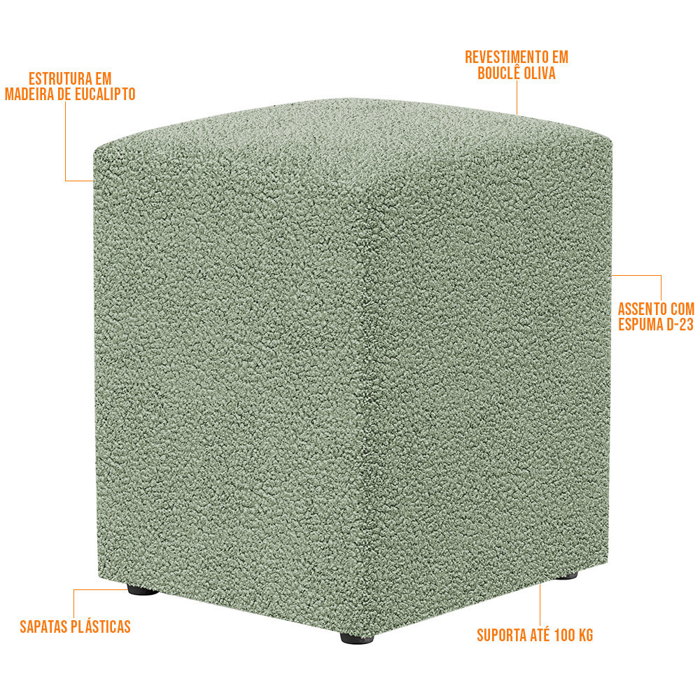 Kit 02 Puffs Quadrado Decorativo Sala De Estar L02 Bouclê Oliva - Lyam Decor