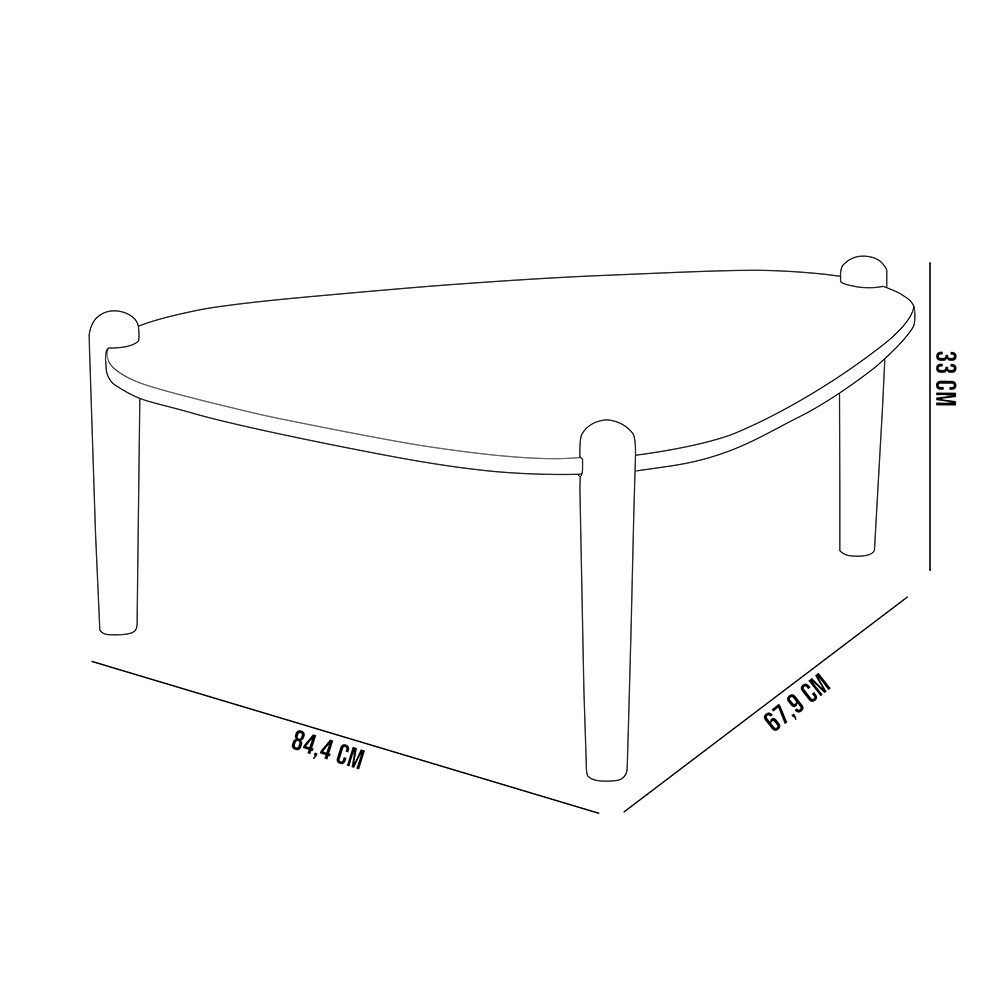 Mesa de Centro Para Sala de Estar Pés Madeira Baixa Trium A03 Nero Preto - Lyam Decor