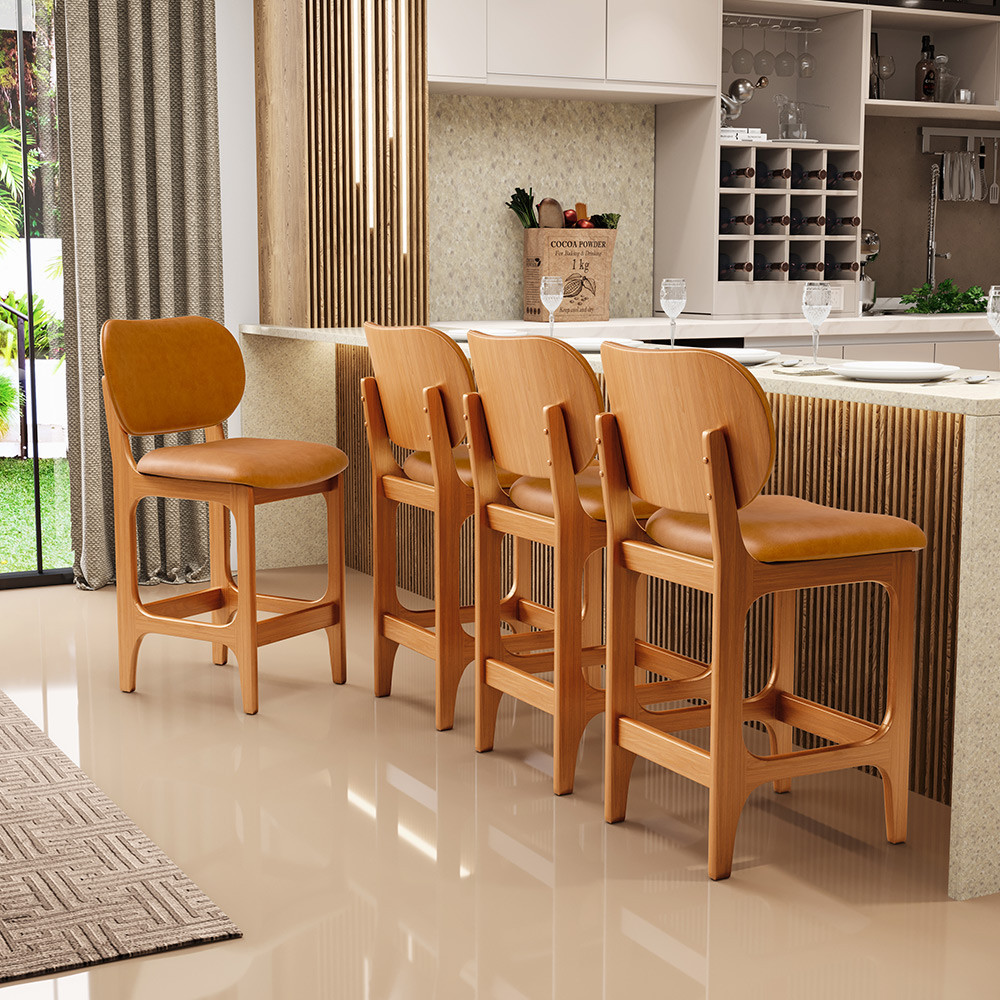Kit 03 Banquetas Baixa Bar Cozinha E Sala De Jantar Fixa Betta L02 Imbuia Couríssimo Whisky - Lyam Decor