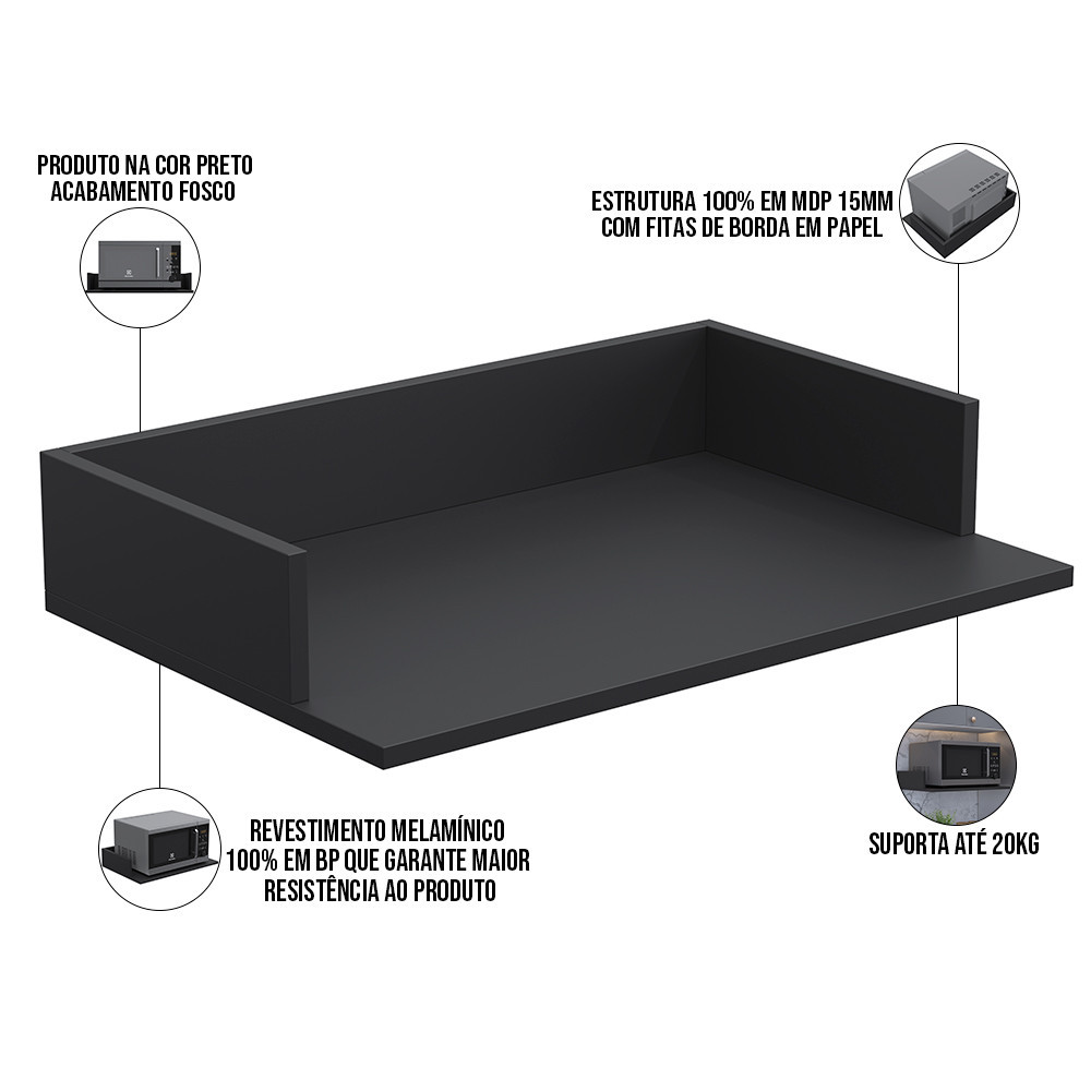 Kit 03 Suportes Suspensos Para Micro-ondas Forno 60x40 cm Class L03 Preto - Lyam Decor
