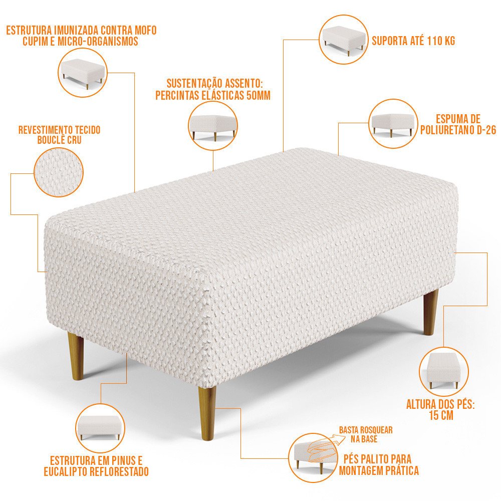 Puff Decorativo Para Sala de Estar Cléo Pés Palito 90 cm W01 Bouclê Cru - Lyam