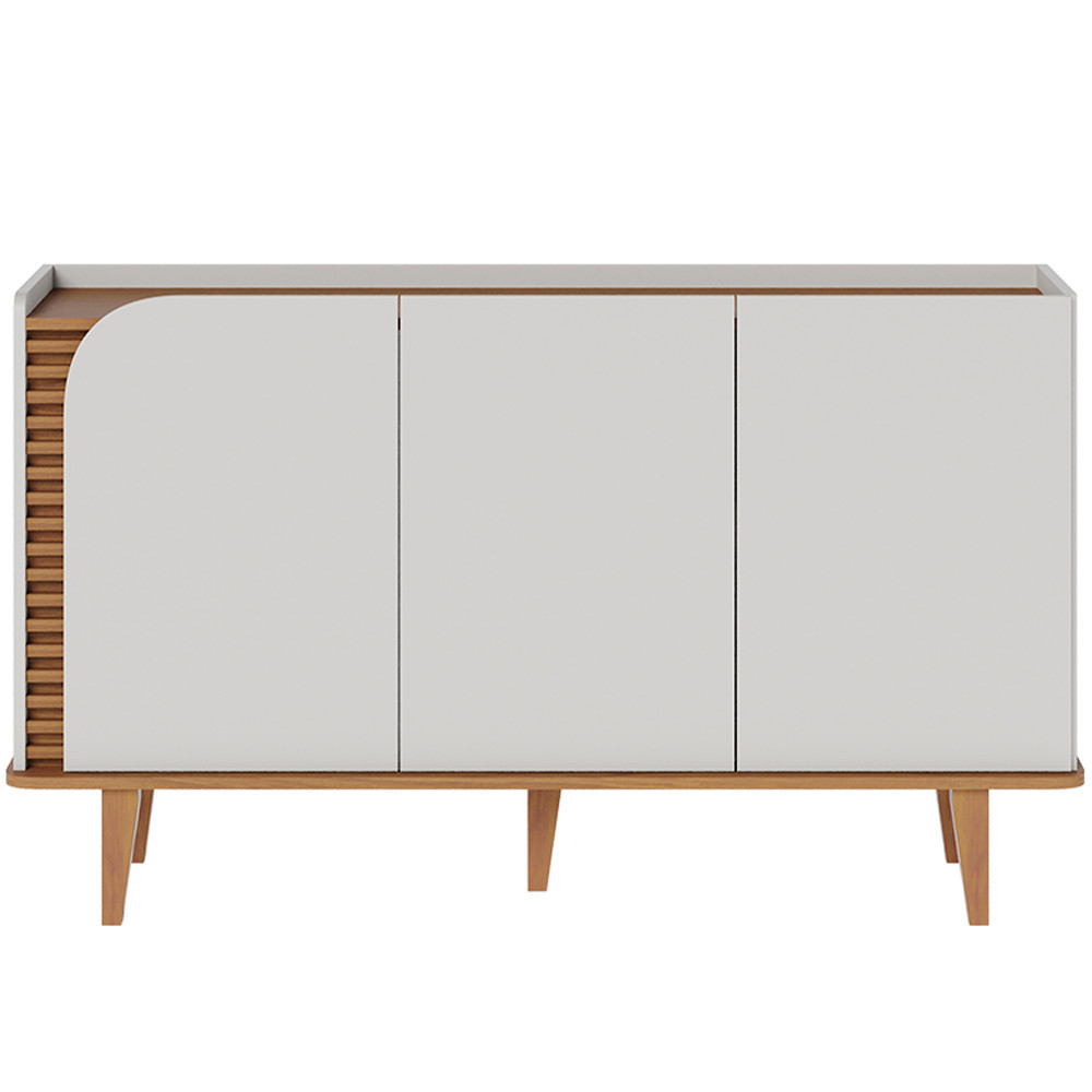 Aparador Buffet Para Sala de Jantar 3 Portas Elora C04 Off White Matte Freijó - Lyam Decor