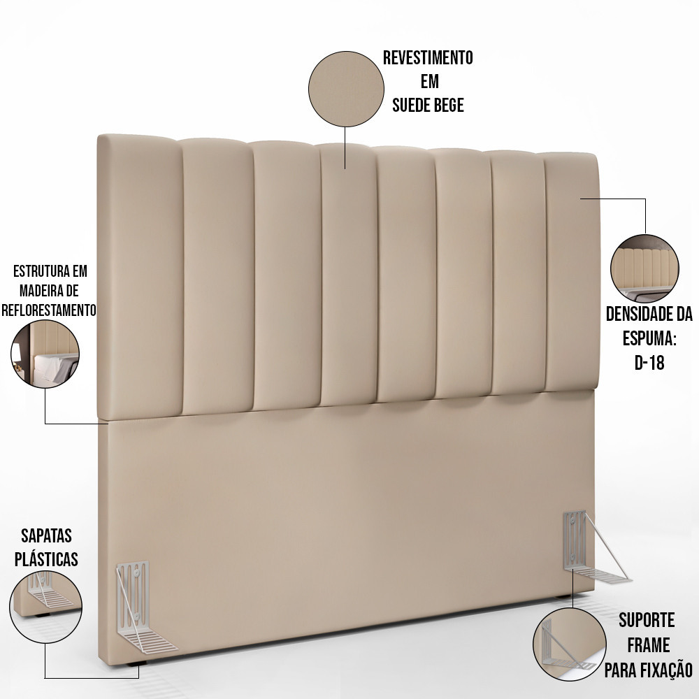 Cabeceira Cama Box Casal 140 cm Dália W01 Suede Bege - Lyam Decor