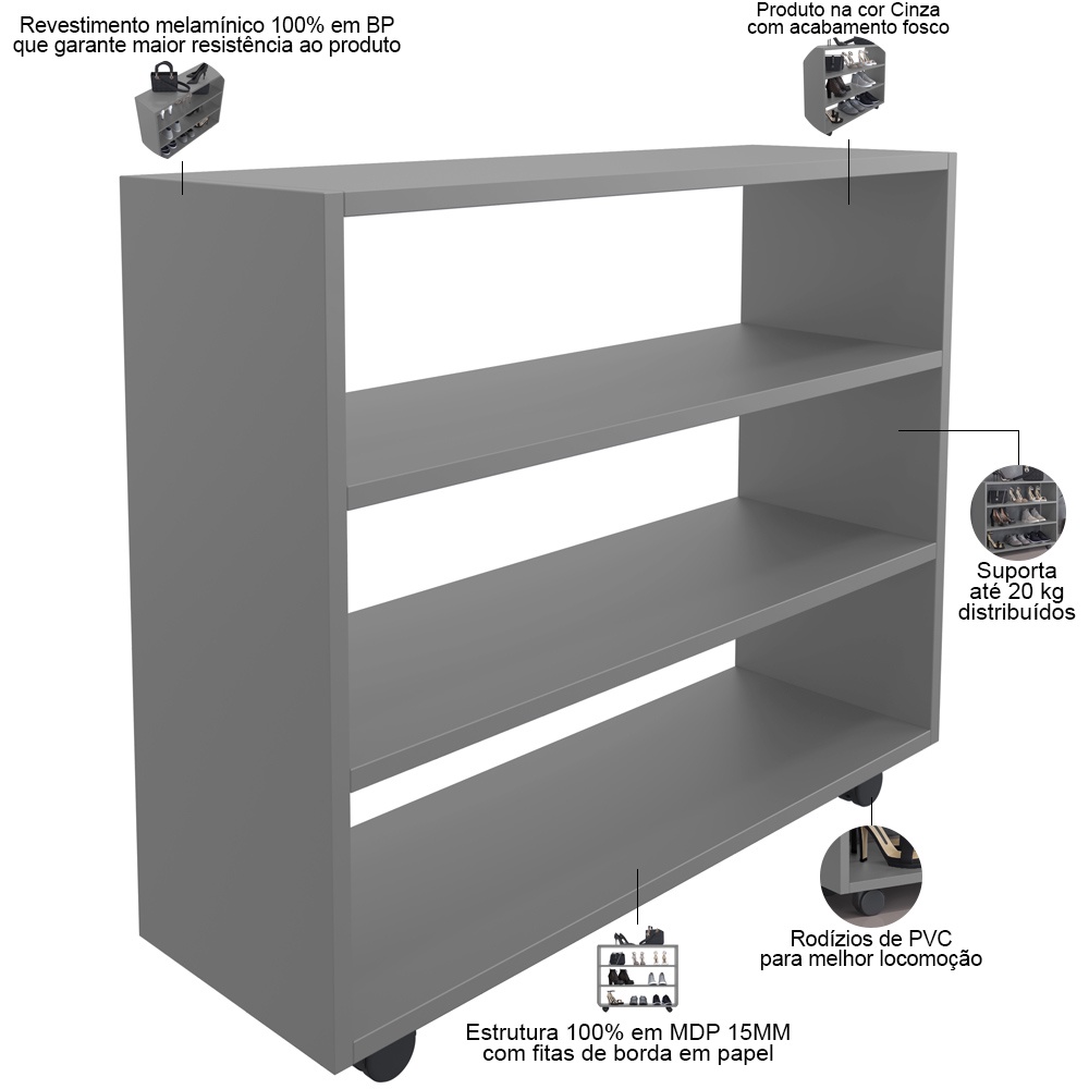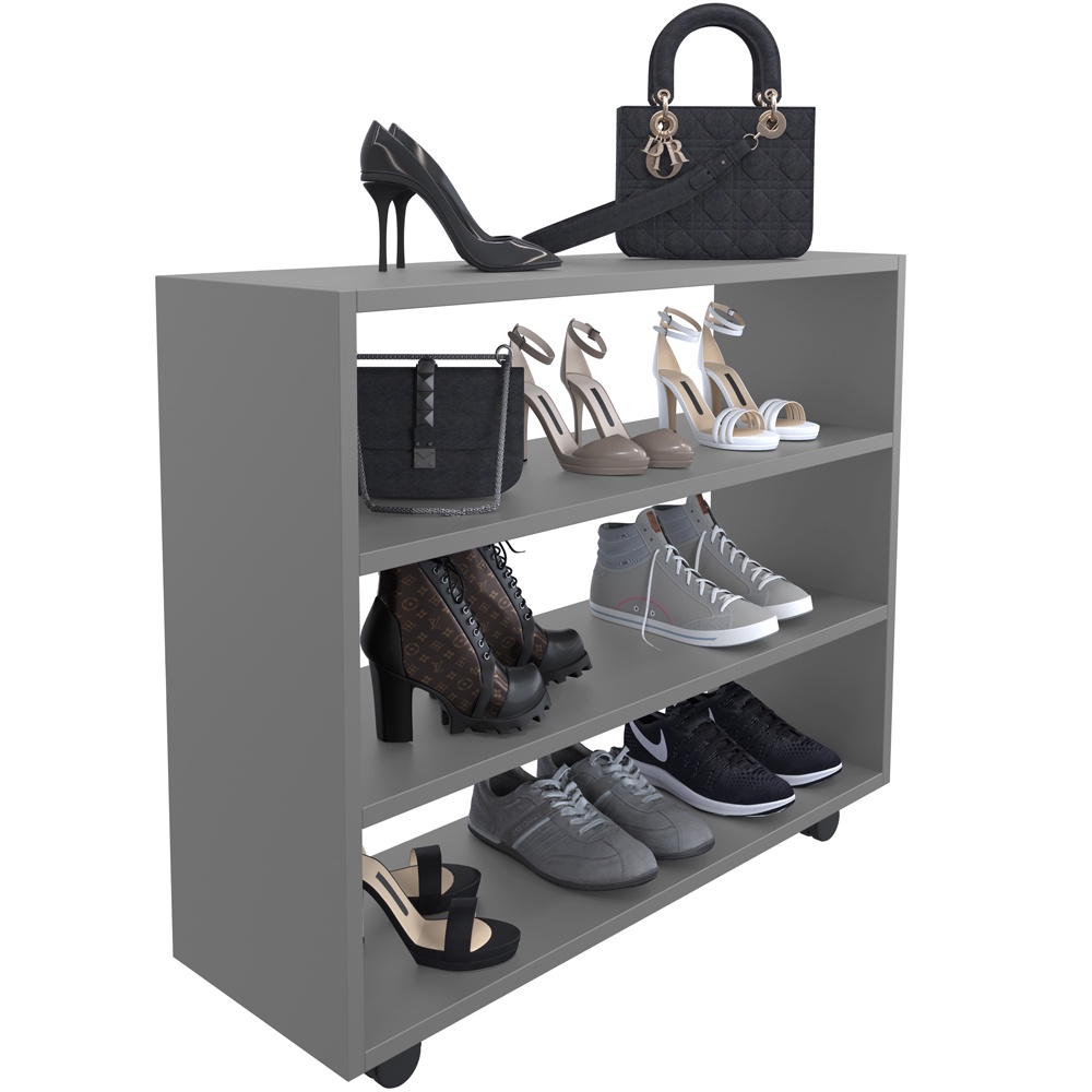 Sapateira Multiuso Organizador Com 03 Prateleiras E Rodizio Pérola L03 Cinza - Lyam