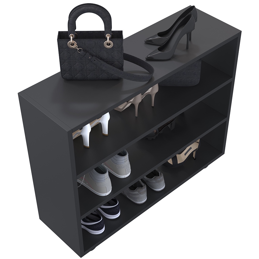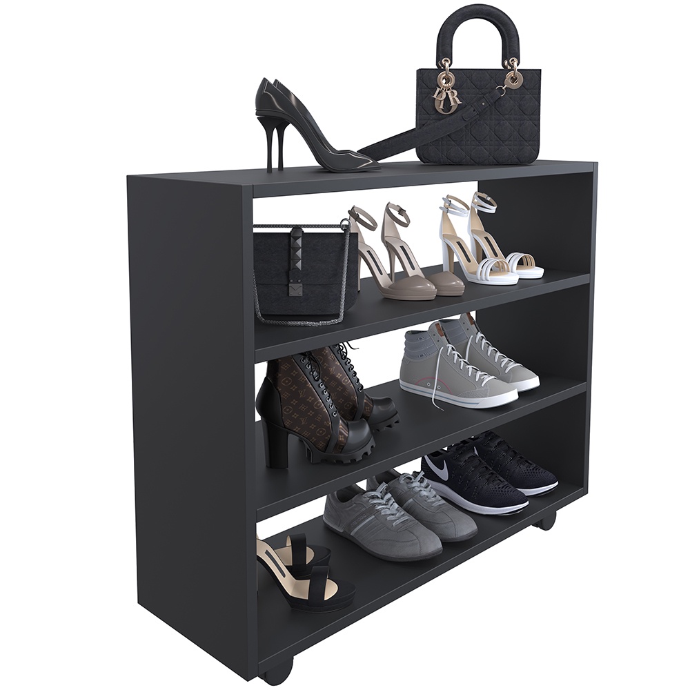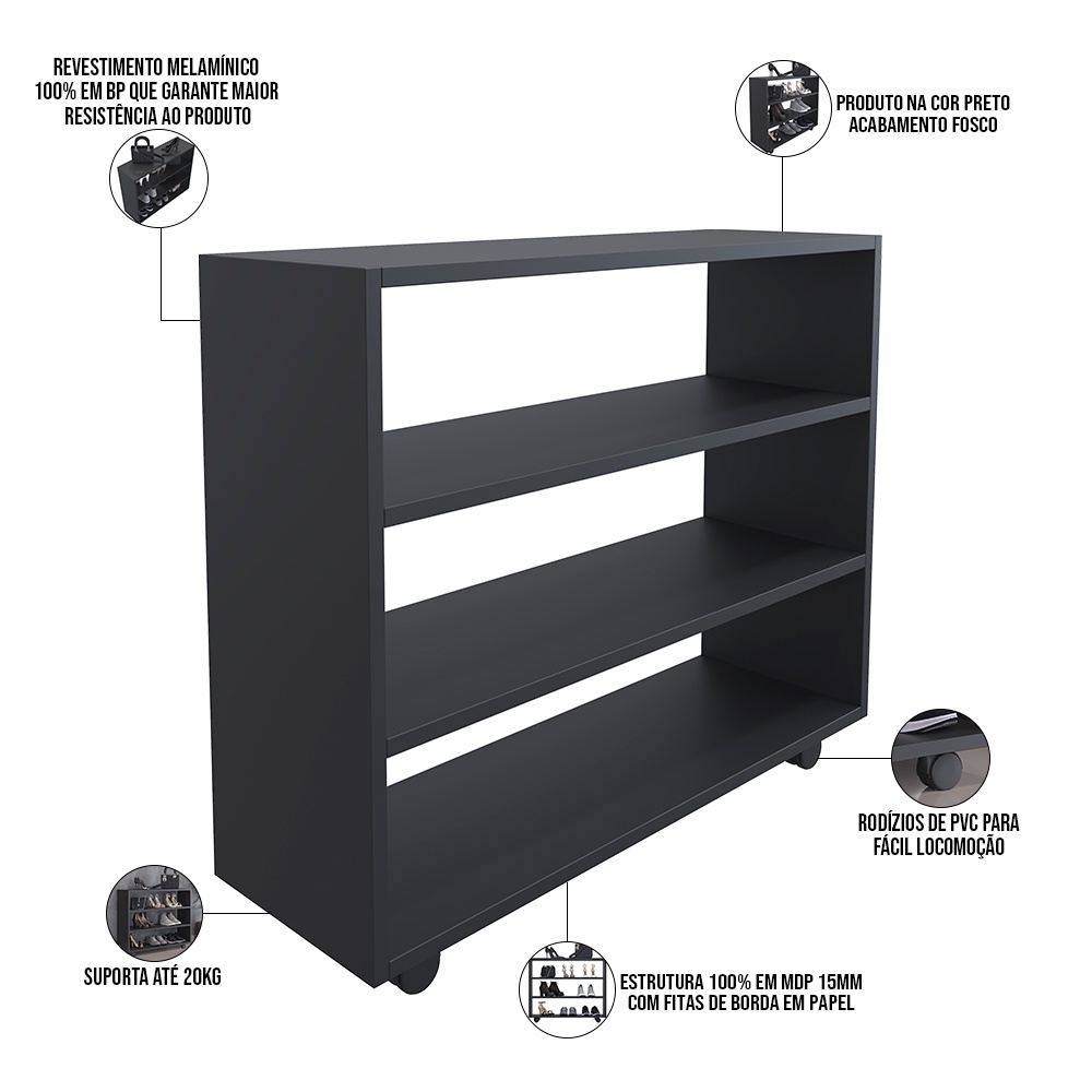 Sapateira Multiuso Organizador Com 03 Prateleiras E Rodízio Pérola L03 Preto - Lyam Decor