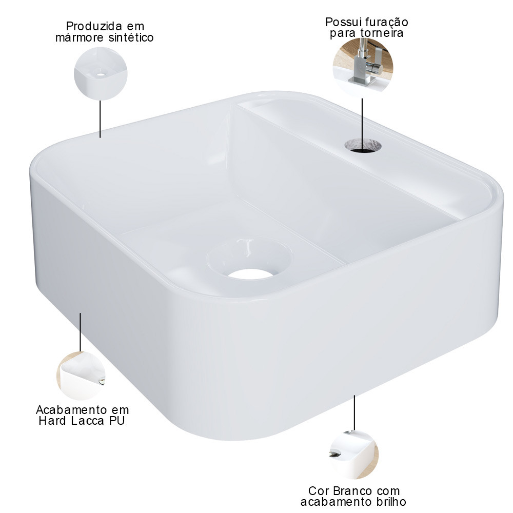 Cuba de Apoio Quadrada Para Banheiro Lavabo C01 QA31W Branco - Lyam