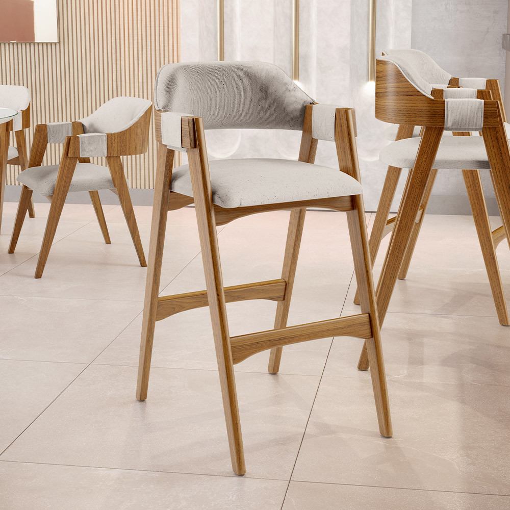 Banqueta Alta Para Cozinha Sala de Jantar Bar Suran L02 Linho Cru - Lyam Decor