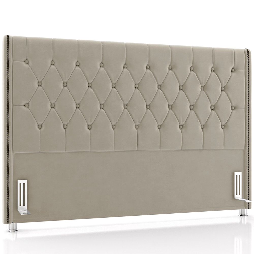 Cabeceira Cama Box Queen 160cm Estofada Frizza P05 Veludo Bege - Lyam Decor
