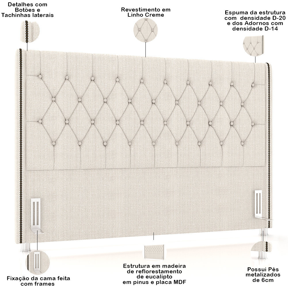 Cabeceira Cama Box King 195cm Estofada Frizza P05 Linho Creme - Lyam Decor
