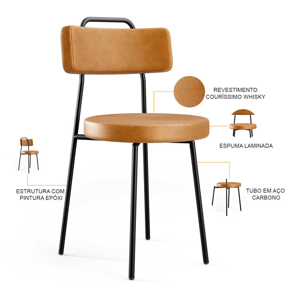 Cadeira Decorativa Estofada Para Sala De Jantar Barcelona L02 Couríssimo Whisky - Lyam Decor