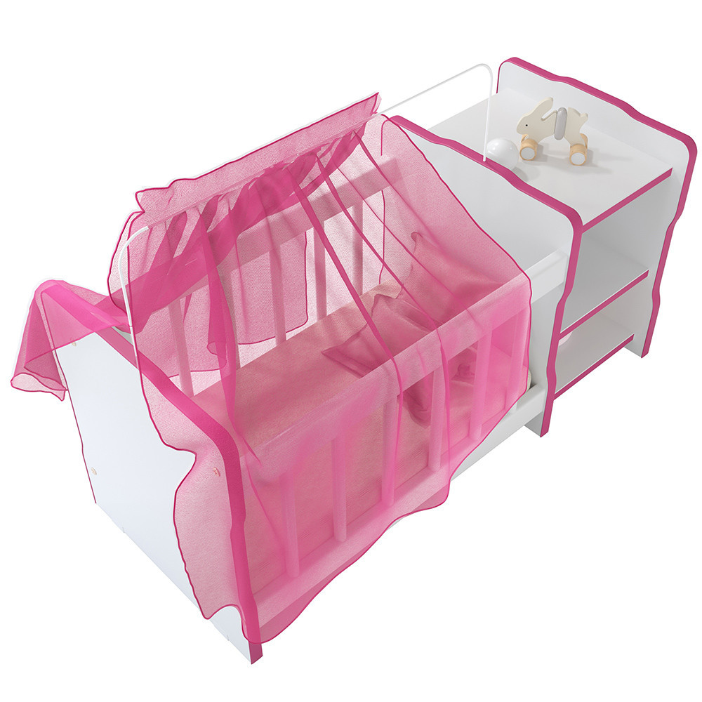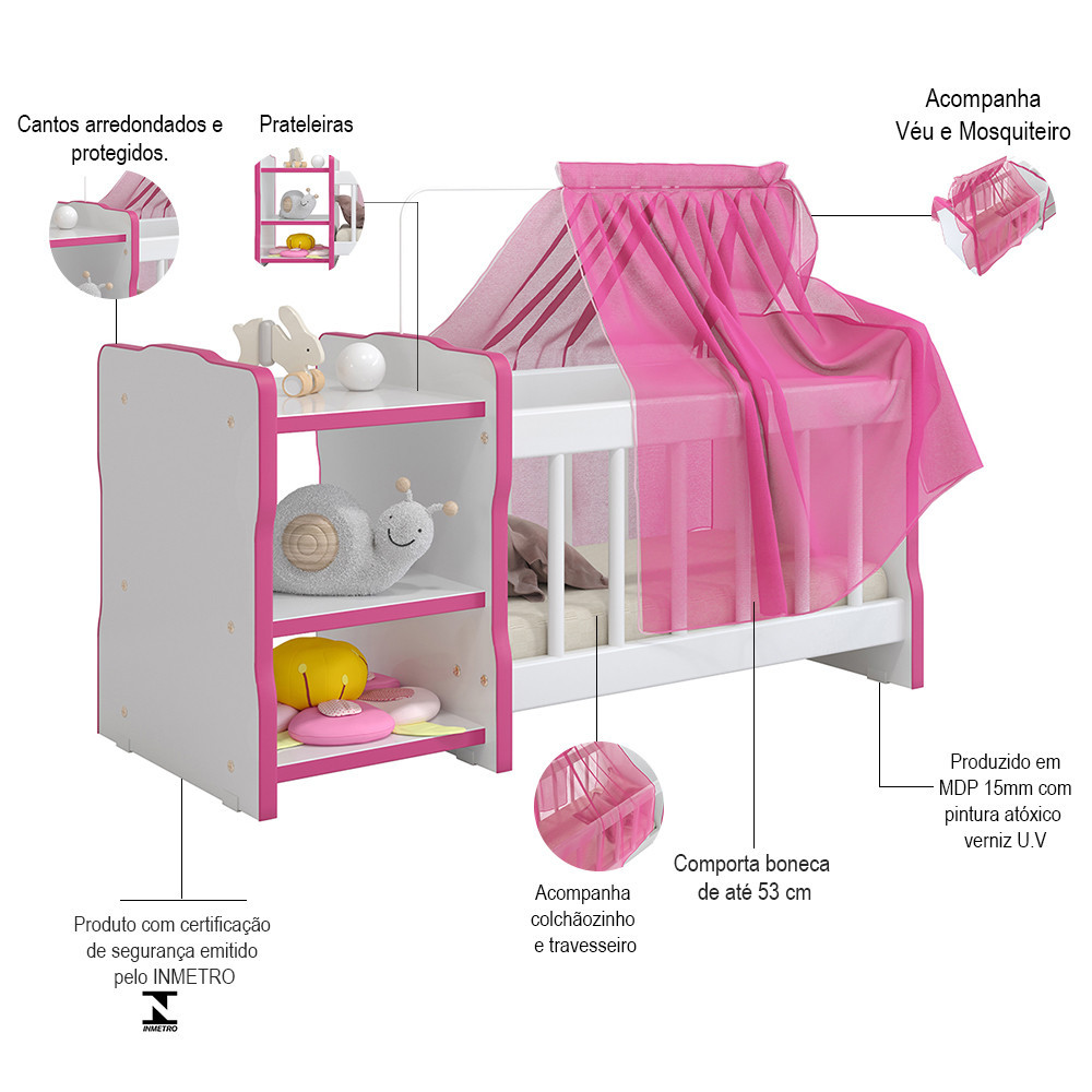 Kit 02 Berços Para Boneca Cristal Ursinho C02 Brinquedo Infantil Branco Rosa - Lyam Decor