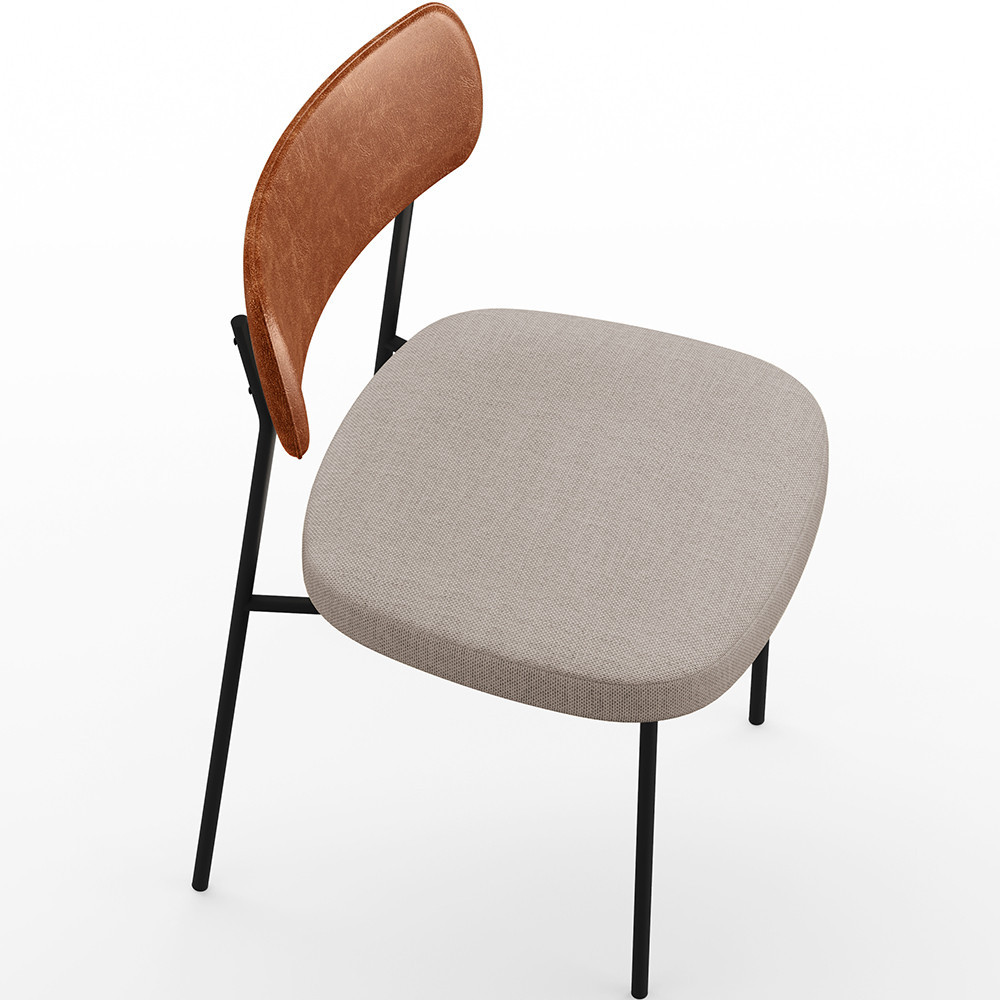 Cadeira Decorativa Estofada Para Sala De Jantar Melina L02 Couríssimo Camel Linho Bege - Lyam Decor