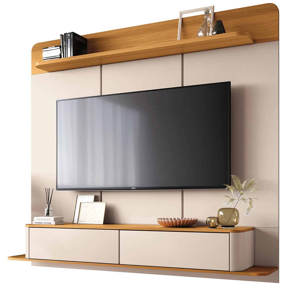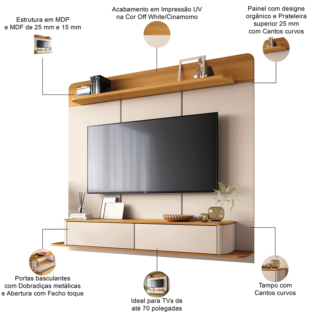 Painel Para TV 70 Pol Bancada Suspensa Orgânica Cheri B01 Off White Cinamomo - Lyam Decor