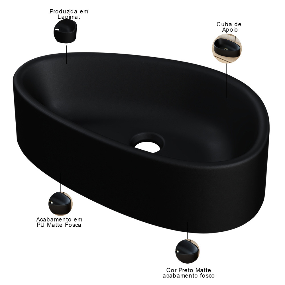 Cuba de Apoio Gota Para Banheiro Lavabo C01 BG43W Preto Matte Fosca - Lyam