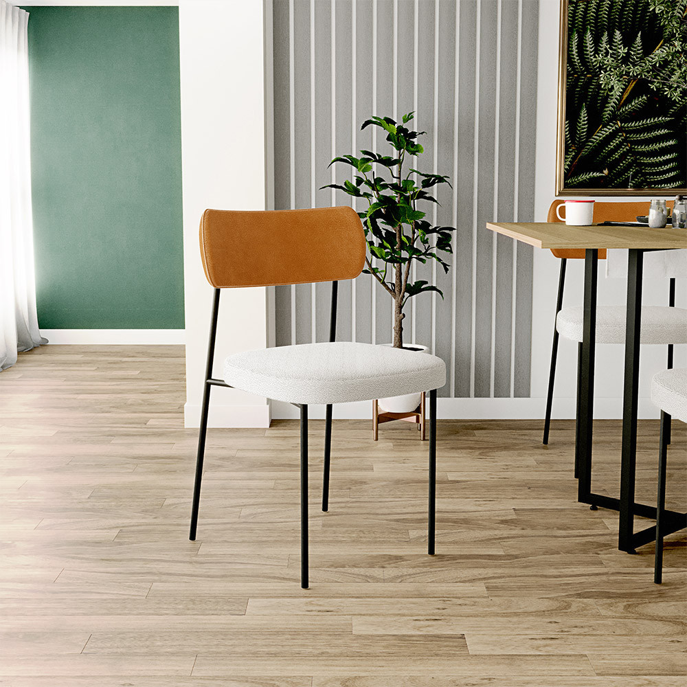 Kit 02 Cadeiras Estofadas Para Sala De Jantar Melina L02 Couríssimo Whisky Bouclê Creme - Lyam Decor