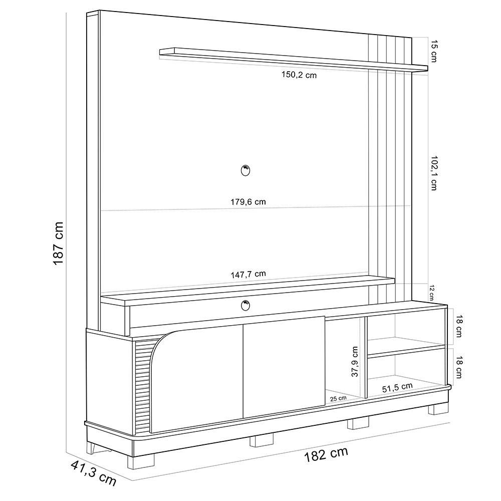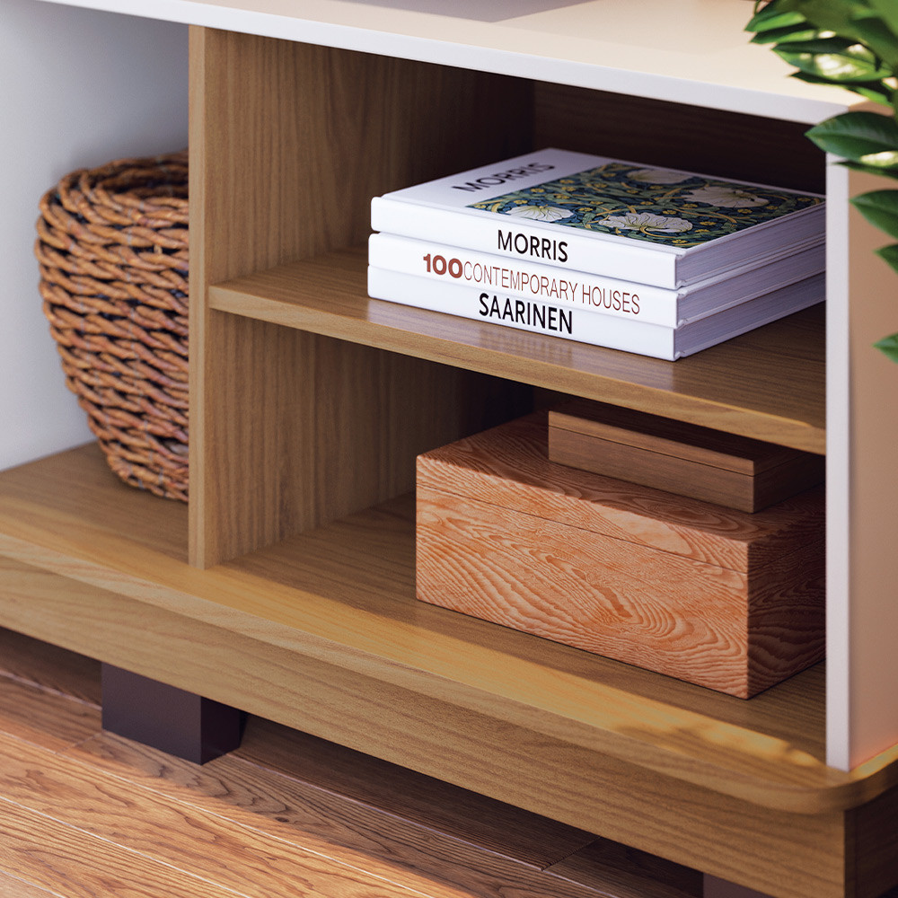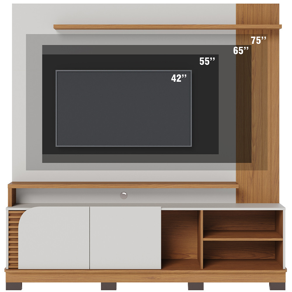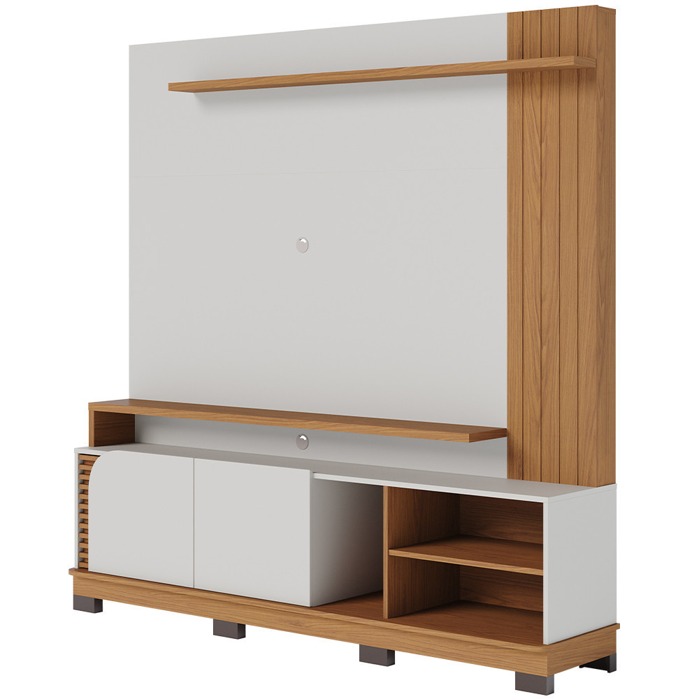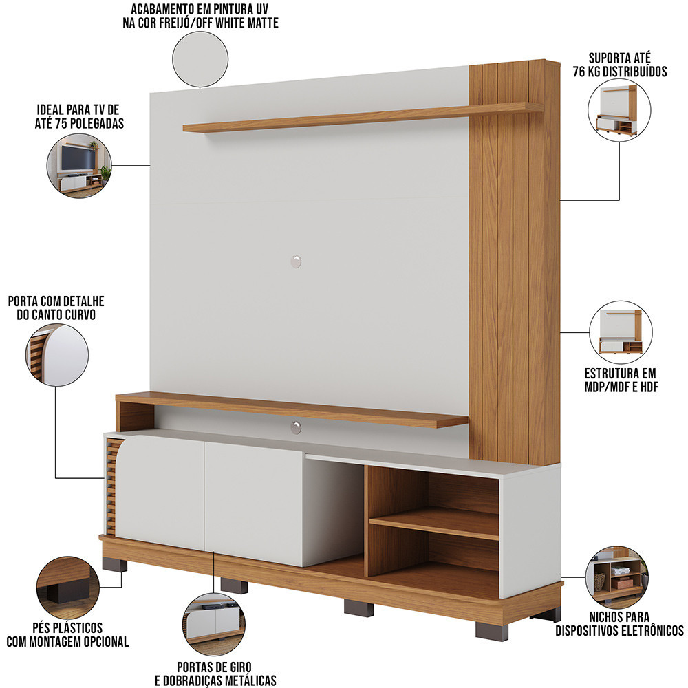 Estante Painel Para TV 75 Pol 182cm Mayer C04 Off White Matte Freijó - Lyam Decor