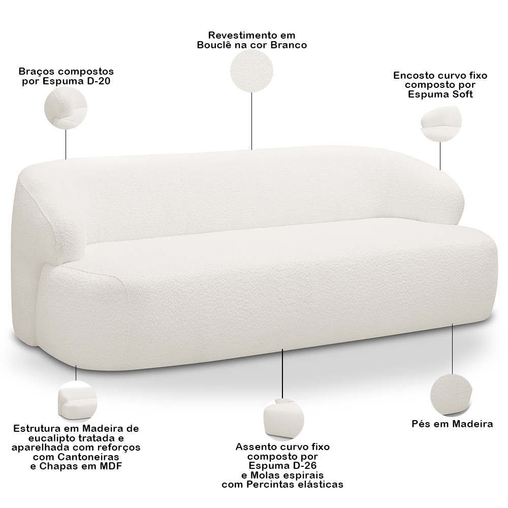 Sofá 2 Lugares Curvo Orgânico Para Sala Living 150cm Barolo L06 Bouclê Branco - Lyam Decor
