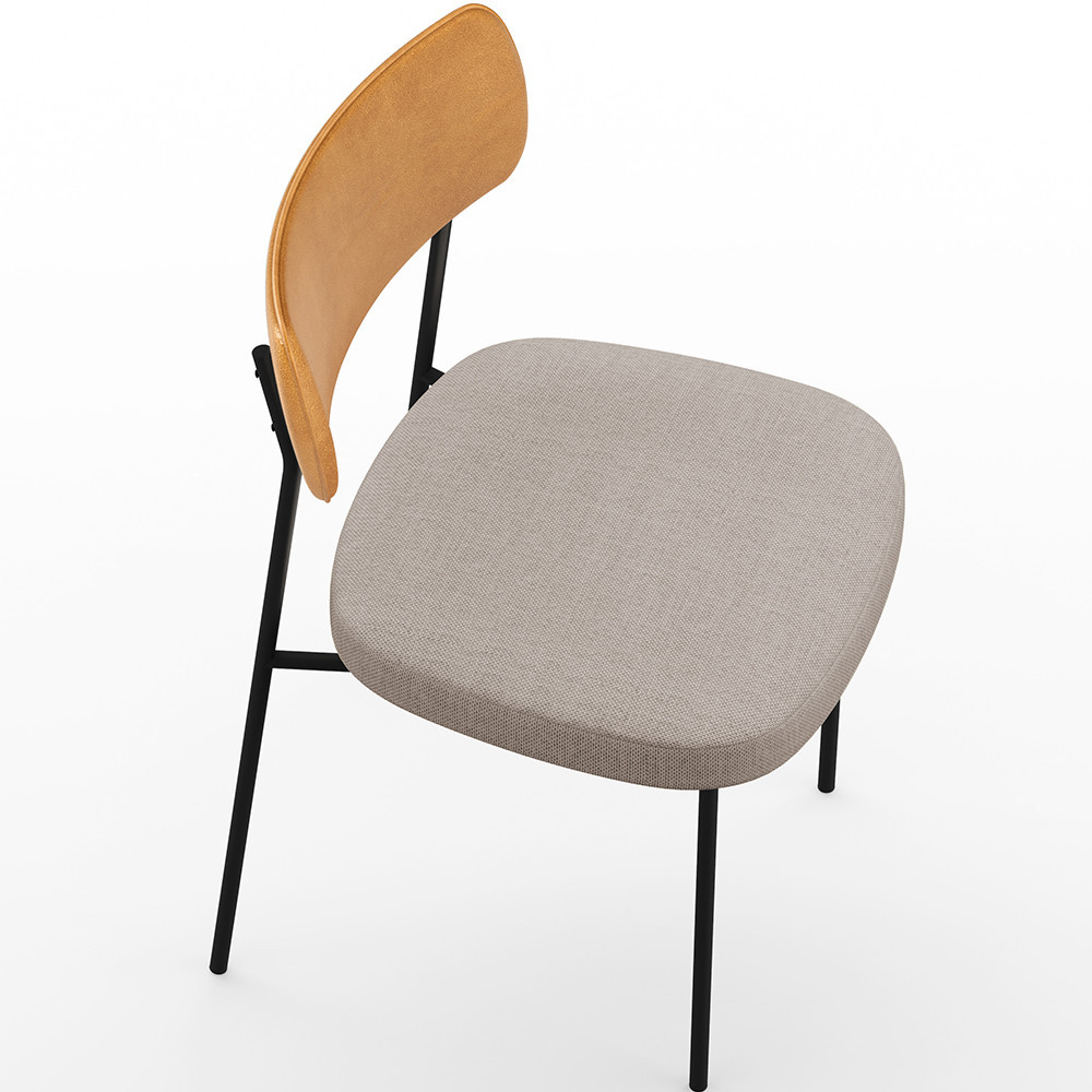 Cadeira Decorativa Estofada Para Sala De Jantar Melina L02 Couríssimo Whisky Linho Bege - Lyam Decor