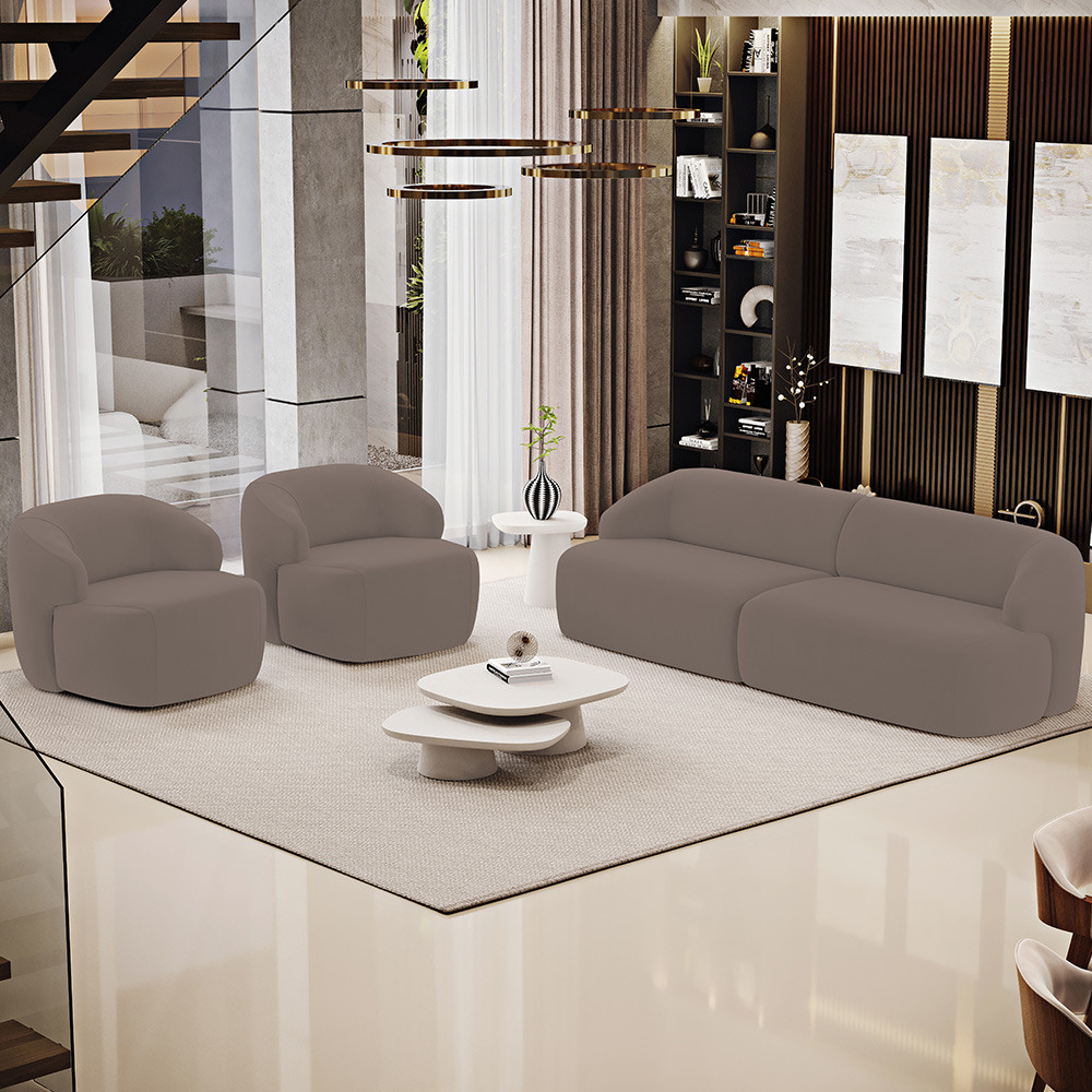 Sofá 3 Lugares Curvo Orgânico Para Sala Living 250cm Barolo L06 Veludo Marrom - Lyam Decor