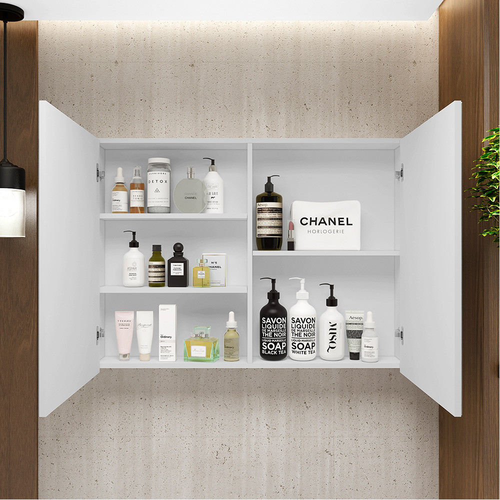 Armário Aéreo Para Banheiro 100cm Com 02 Portas E Espelho Malbec B06 Branco - Lyam Decor
