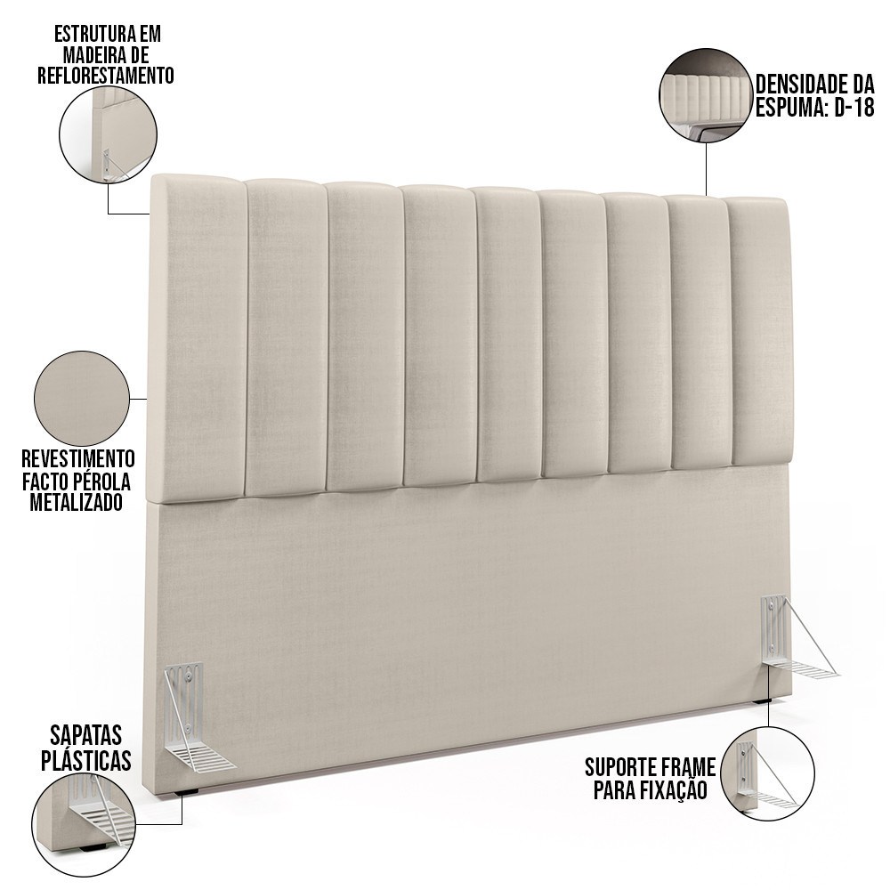 Cabeceira Cama Box Queen 160 Cm Dália W01 Facto Pérola Metalizado - Lyam Decor