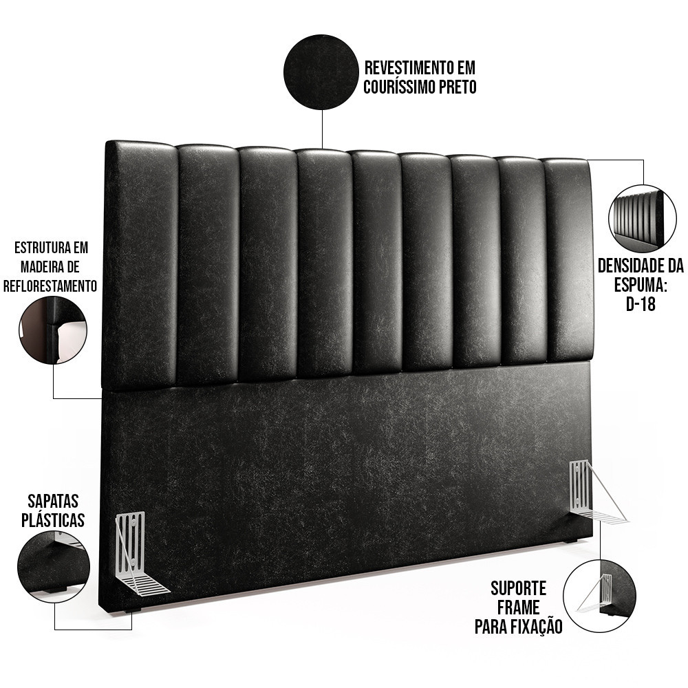 Cabeceira Cama Box Queen 160 cm Dália W01 Couríssimo Preto - Lyam Decor