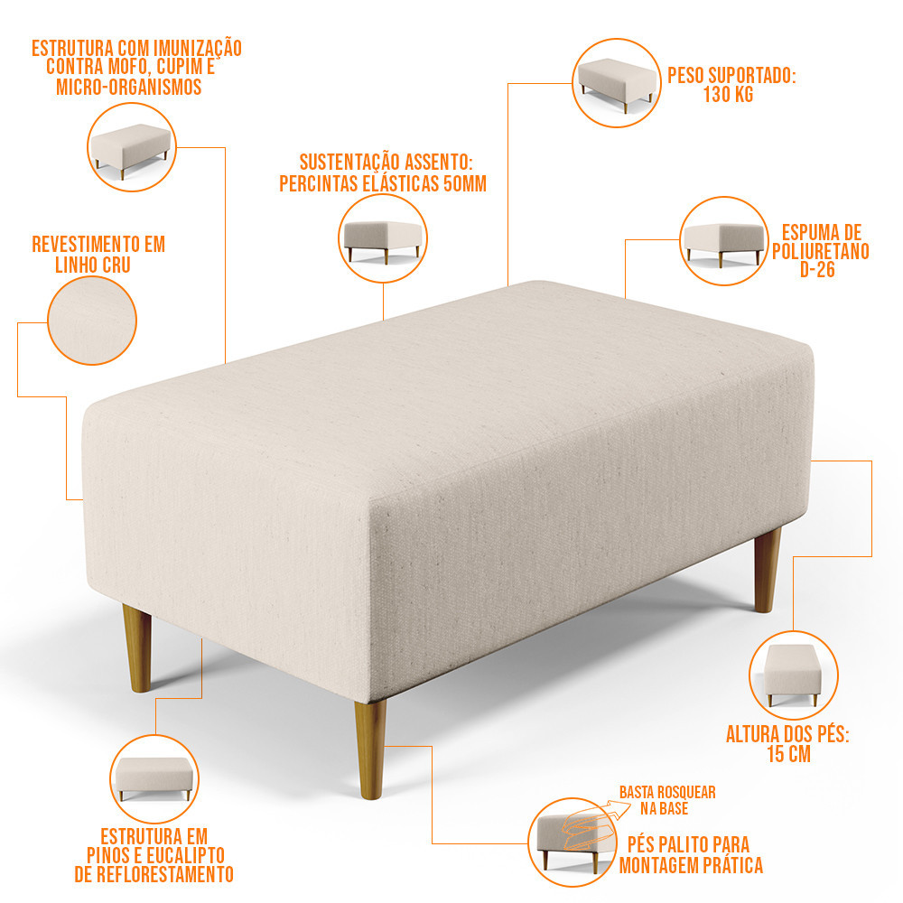 Puff Decorativo Sala de Estar Cléo W01 Pés Palito 90 cm Linho Cru - Lyam Decor