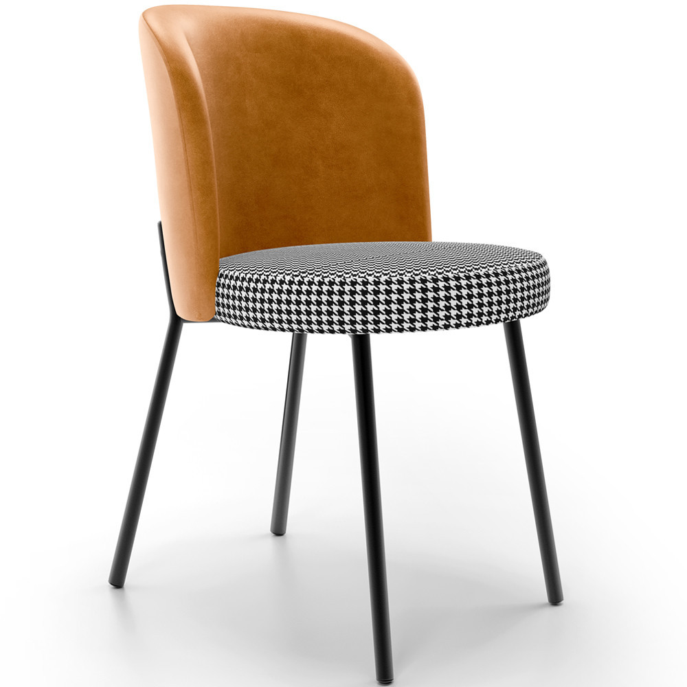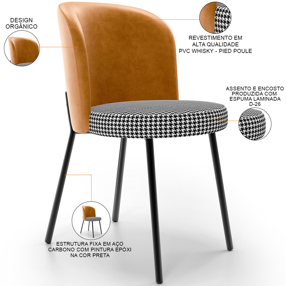 Cadeira Para Sala de Jantar Cozinha Estofada Gavi L02 Couríssimo Whisky Pied Poule - Lyam Decor