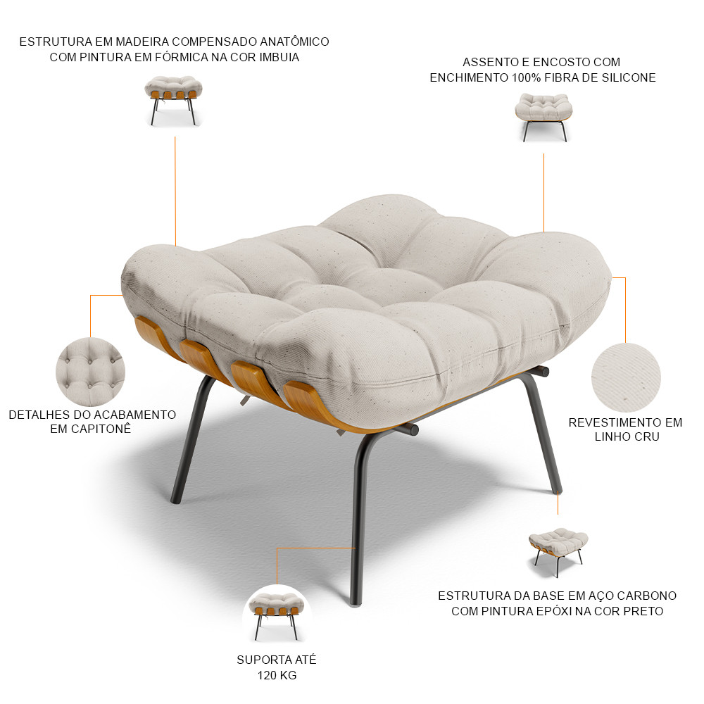 Puff Decorativo Sala de Estar Costela L02 Linho Cru - Lyam Decor