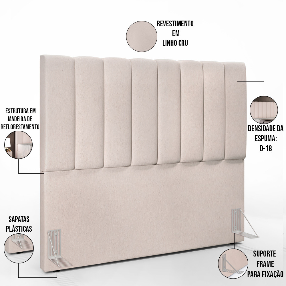 Kit Cabeceira Cama Box Casal 140cm e Calçadeira Recamier Baú Dália W01 Linho Cru - Lyam Decor