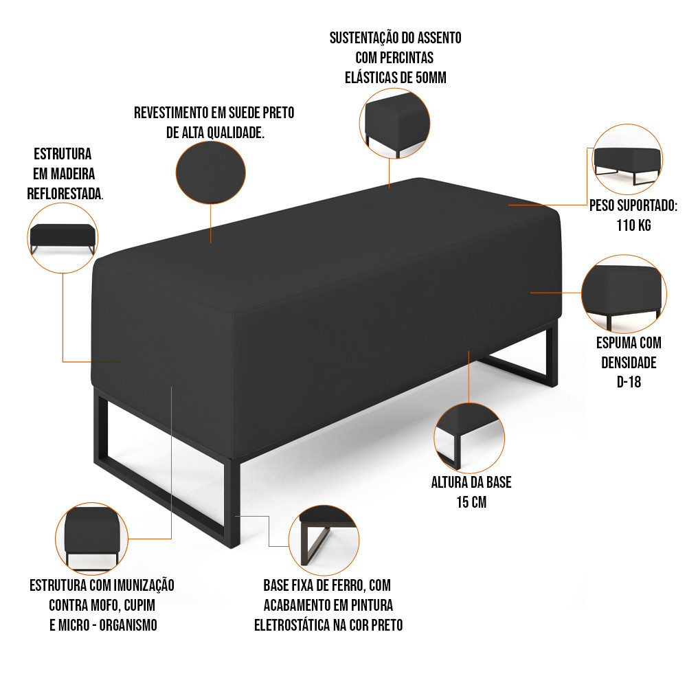 Puff Decorativo Para Sala de Estar Cléo W01 Base de Ferro 90 cm Suede Preto - Lyam Decor