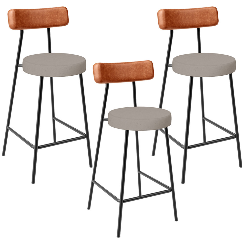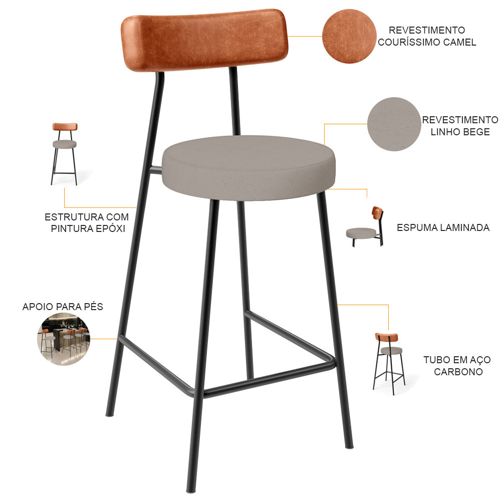 Kit 03 Banquetas Baixa Bar Cozinha Sala Jantar Milão L02 Couríssimo Camel Linho Bege - Lyam Decor
