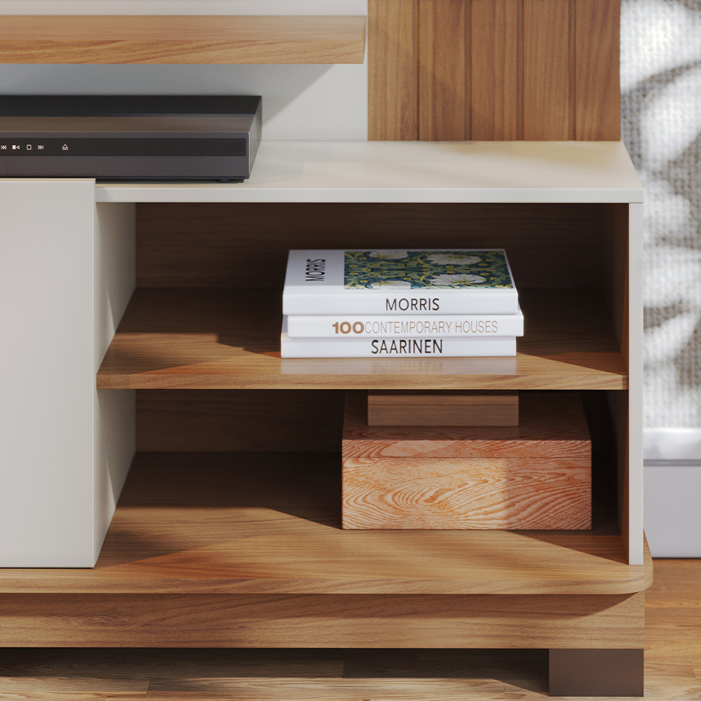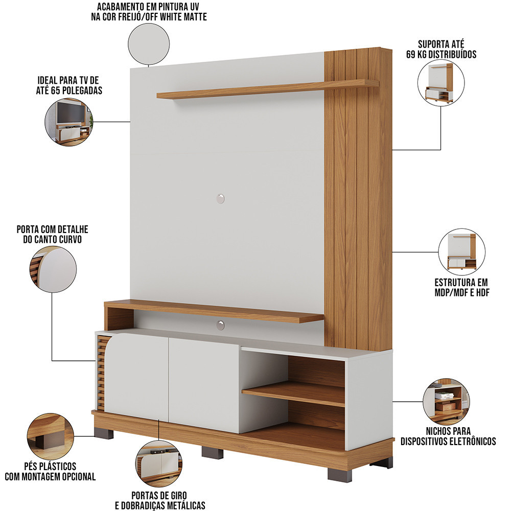 Estante Painel Para TV 65 Pol 152cm Mayer C04 Off White Matte Freijó - Lyam Decor